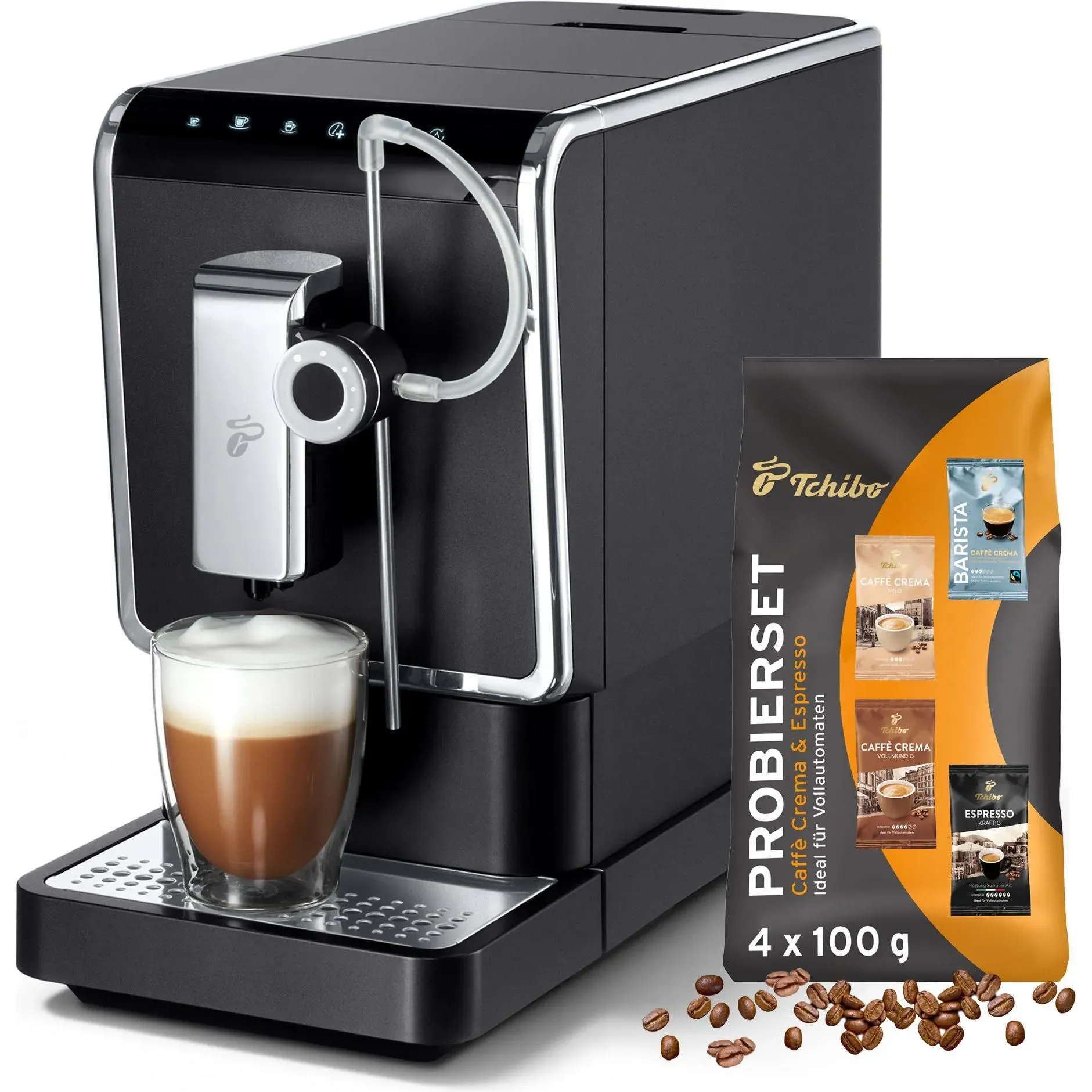 9 Händlerangebote bei billiger.de - Kategorie: Kaffeevollautomaten - Tchibo - Genuss, wie für Milch gemacht! Mit dem neuen Esperto Pro zaubern Sie dank des One Touch Milk System sowohl aromatischsten Espresso und Caff Crema als auch endlich leckeren Cappuccino und Milchschaum ganz einfach auf Knopfdruck! Liebhaber von Milchspezialitäten können die Konsistenz des Milchschaums dabei selbst bestimmen und sich für weichen, cremigen oder festen, fluffigen Milchschaum entscheiden für die Zubereitung vielfältiger Kaffeekreationen mit Milch! Wenn Sie Ihren Kaffee stärker mögen, drücken Sie die Intense+ -Taste, sodass Ihr Kaffee mit mehr Bohnen zubereitet wird. Bestellen, freuen und direkt genießen! Bereits seit über 3 n stellen die Kaffeeexperten von Tchibo Kaffeemaschinen her. Auch bei diesem Vollautomaten ist jede Tasse speziell auf Tchibo Kaffees abgestimmt ein ideales Zusammenspiel zwischen Mahlgrad, Wassermenge, -temperatur und Druck. Ein hochwertiges Edelstahlkegelmahlwerk und eine einfache Reinigung inkl. EasyClean Spülfunktion und automatischem Entkalkungsprogramm machen den Vollautomaten dabei einfach zu pflegen und langlebig. - GTIN:4006083935006 ![]() ![]() Tchibo Esperto Pro Anthrazit inkl. Kaffeeprobierset