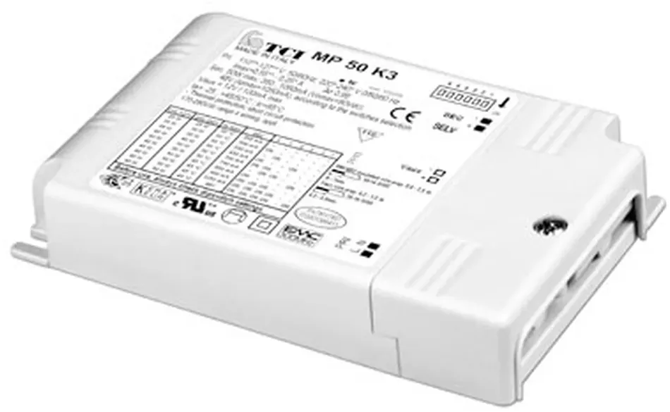 Kategorie: Zubehör für Leuchten - tci - GTIN:8010703307216 - MP 50 K3, Multi LED Konverter 50W, nicht dimmbar Produkttyp: TRANSFORMATOR Marke: TCI - 43,66 Euro bei Amazon Marketplace Automotive - gefunden von billiger.de ![]() ![]() TCI Multi LED Konstantstrom-Konverter MP 50 K3, 350mA - 1050mA, 25W-50W, 74Vf-48Vf, nicht dimmbar TCI-122204