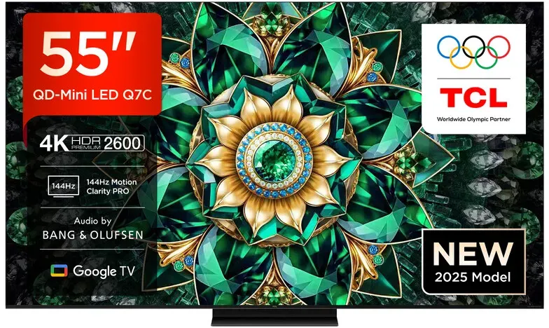 EEK: F - Kategorie: Fernseher - TCL - GTIN:5901292526610 - TCL 55Q7C QLED Mini LED Fernseher, 55 Zoll, 4K HDR Premium, Dolby Vision IQ & Atmos, Smart TV mit Google TV, Bang & Olufsen 6.2.2 Sound, 144Hz VRR, AMD FreeSync Premium Pro, HDMI 2.1, AirPlay 2, Alexa, IMAX Enhanced - 579,00 Euro bei Joybuy - gefunden von billiger.de ![]() ![]() 55' TCL 55Q7C