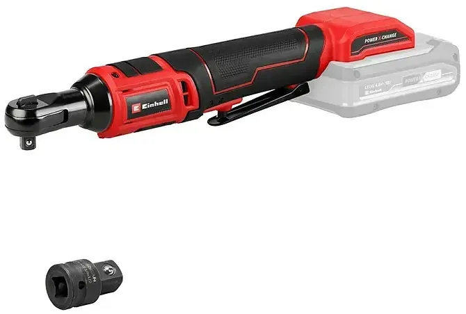 15 Händlerangebote bei billiger.de - Kategorie: Akkuschrauber - Einhell - Power X-Change Der Akku-Ratschenschrauber TE-RW 18/60 Li-Solo ist Teil der Einhell Power X-Change Familie, in der Akkus und Systemgeräte flexibel kombiniert werden können. Handlich Der Akku-Ratschenschrauber ist kompakt gebaut und somit ideal für Anwendungen im Fahrzeugbereich. Er ist ebenfalls als Handratsche nutzbar. Werkzeugaufnahme Ausgerüstet mit einer robusten 3/8-Zoll-Werkzeugaufnahme können mit hohem Drehmoment von 60 Nm passende Schrauben und Muttern angezogen und gelöst werden. Drehzahlelektronik Mit einer stufenlosen Drehzahlelektronik kann anwendungsgerecht gearbeitet und einfach zwischen Rechts-/Linkslauf umgeschaltet werden. Softgrip Dank des mit Softgrip ausgestatteten Handgriffs liegt der kompakte Akku-Ratschenschrauber optimal in der Hand und sorgt somit für ein angenehmes Arbeiten. Ausleuchtung Direkt am Ratschenschrauber ist ein LED-Licht integriert, das für die optimale Ausleuchtung des Arbeitsbereiches sorgt. Lieferung ohne Akku Der Akku-Ratschenschrauber wird ohne Power X-Change Akku und Ladegerät geliefert. Zum Lieferumfang gehört ein Adapter von 3/8' auf 1/2'-Werkzeugaufnahme. - GTIN:4006825680621 ![]() ![]() Power X-Change Akku-Ratschenschrauber TE-RW 18/60 Li-Solo, 18Volt rot/schwarz, ohne Akku und Ladegerät, 3/4', nutzbar als Handratsche