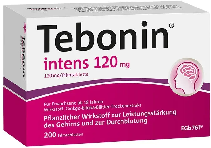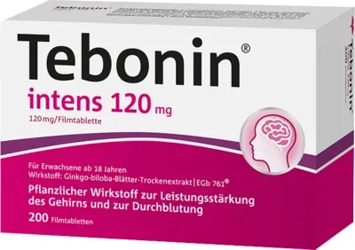 Zustand: Neu - 0,74 € / stück - Ginkgo Pflanzliches Ergänzungsmittel Ginkgo - Tebonin intens Dr.Willmar Schwabe GmbH & Co.KG - 07682356 - EAN: 4150076823563 EAN: 4053888007155 - PZN-07682356 60 St Filmtabletten apothekenpflichtig Zu Risiken und Nebenwirkungen lesen Sie die Packungsbeilage und fragen Sie Ihre Ärztin, Ihren Arzt oder in Ihrer Apotheke. Dieses Produkt darf nicht an Personen unter dem gesetzlichen Mindestalter abgegeben werden. Dieses Produkt darf nicht an Personen unter dem gesetzlichen Mindestalter abgegeben werden. - 14 Händler im amazon.de Marketplace ![]() ![]() Tebonin intens 120 mg | 60 Stück | bei akutem & chronischem Tinnitus* | pflanzliches Arzneimittel mit Ginkgo Biloba Extrakt | unterstützt bei Ohrengeräuschen* & Schwindel | mit Ginkgo Spezialextrakt