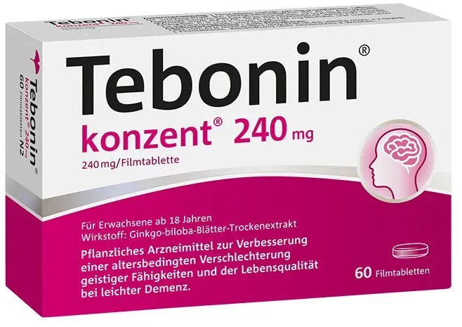 Verfügbarkeit: 1-2 Werktage - 1,17 €/St - Kategorie: Arzneimittel - Dr. Willmar Schwabe - GTIN:4150077520393 - PZN:07752039 - Tebonin konzent 240 mg 60 St - rezeptfrei - von Dr. Willmar Schwabe GmbH & Co. KG - Filmtabletten - 60 St - 70,01 Euro bei DocMorris Apotheke - gefunden von billiger.de Dieses Angebot von Amazon Marketplace für 60 Tabletten ist eine solide Option für den regelmäÃ?igen Gebrauch. ![]() ![]() Dr. Willmar Schwabe Tebonin konzent 240 mg | 60 Tabletten | stärkt Gedächtnis & Konzentration | fördert die Durchblutung | bei Vergesslichkeit im Alter | pflanzliches Arzneimittel mit Gingko Biloba Extrakt