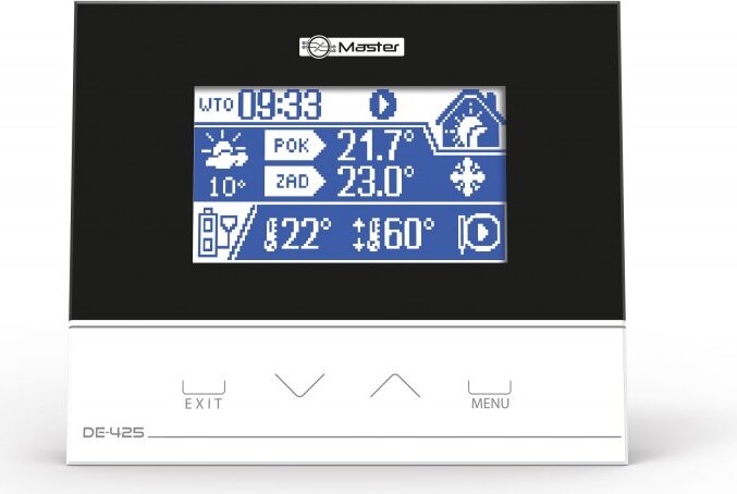 EAN: 5902479660318 - Tech Master Raumregler EU-296 mit RS-Kommunikation Fernbedienung für Heizung, Warmwasser und Wohnkomfort passend für EU-i-1, EU-i-2, EU-i-3Mit der Raumfernbedienung EU-296 steuern und überwachen Sie Zentralheizung, Warmwasserbereitung und die Raumtemperatur bequem direkt aus dem Wohnzimmer, ohne zur Heizungs-Hauptsteuerung gehen zu müssen. Die EU-296 ist ideal geeignet für Hauptsteuergeräte mit RS-Kommunikation der Firma Master (kompatibel mit EU-i-1, EU-i-2, EU-i-3). über das übersichtliche, hintergrundbeleuchtete Grafikdisplay lassen sich alle Einstellungen und Wochenprogramme einfach und intuitiv konfigurieren. Das moderne Design, die hochwertige Glasfront (2 mm) und Touch-Bedienung passen sich bestens in jedes Wohnambiente ein. Neben der automatisierten Heizungssteuerung punktet der Regler mit Funktionen wie Kindersicherung, automatischer Displayhelligkeit und der Möglichkeit der Steuerung von Mischventilen über optionale Module. Die Aufputz-Montage gelingt schnell und unkompliziert, das Montagematerial wird direkt mitgeliefert. Auch kabellose Kommunikation ist möglich (in Kombination mit dem Funkmodul EU-260). Die Raumfernbedienung EU-296 vereint Komfort, Sicherheit und Technologie für Ihre Haustechnik speziell entwickelt für Endkunden mit zentraler Heizungssteuerung und Wunsch nach mehr Bedienkomfort.VorteileKompatibel mit allen Master-Hauptsteuergeräten mit RS-Kommunikation (z. B. EU-i-1, EU-i-2, EU-i-3)Bequeme Steuerung der Heizung, ... ![]() ![]() TECH STEROWNIKI II EU-i-1 WW Mischerregelung witterungsgeführt raumgeführt festwert