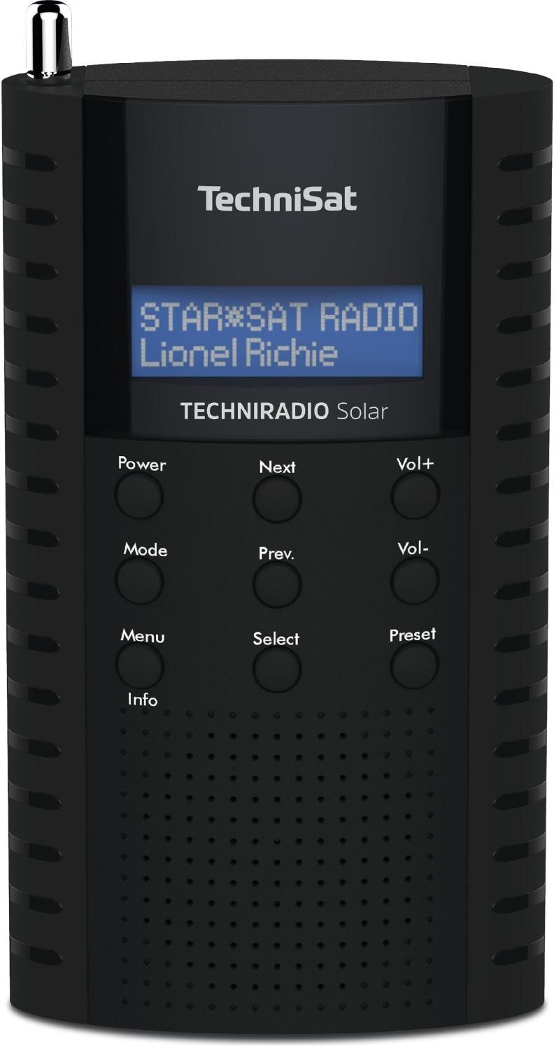 3 Händlerangebote bei billiger.de - Kategorie: Radios - TechniSat - Beim TECHNIRADIO Solar gilt: Je mehr Sonne, desto länger spielt Ihr Lieblingsradiosender. Denn dieses Digitalradio verfügt über ein großes Solarpanel, das den integrierten Akku mit Solarenergie auflädt. Einmal vollständig geladen, sorgt das TECHNIRADIO Solar für bis zu zehn Stunden mobilen Radiogenuss via DAB+ Digitalradio oder UKW. Hierbei steht jeweils ein großzügiger Favoritenspeicher für Lieblingsprogramme bereit. Als Display fungiert ein sehr gut ablesbares und dimmbares LCD. Der integrierte Lautsprecher und die zahlreichen Komfortfunktionen, wie z. B. der Sleeptimer, sorgen für ein Rundum-sorglos-Radiovergnügen in digitaler Klangqualität – zu Hause und vor allem unterwegs. - GTIN:4019588239319 ![]() kaufland.d e Technisat TechniRadio Solar schwarz/blau 0002/3931