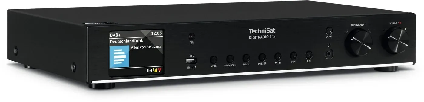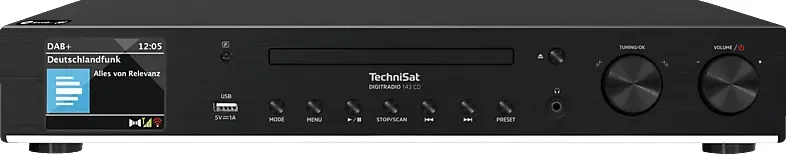 Kategorie: Tuner - TechniSat - GTIN:4019588039896 - DAB+, 174 - 240 MHz, UKW/RDS 87.5 - 108 MHz, TFT, USB, Bluetooth, WLAN, schwarz, 2.63 kg - 195,96 Euro bei Boomstore - gefunden von billiger.de Dieses Angebot ist eine gute Option für das TechniSat DIGITRADIO 143 (V3) ohne CD-Player von alza.de. ![]() ![]() TechniSat DIGITRADIO 143 (V3) - schwarz