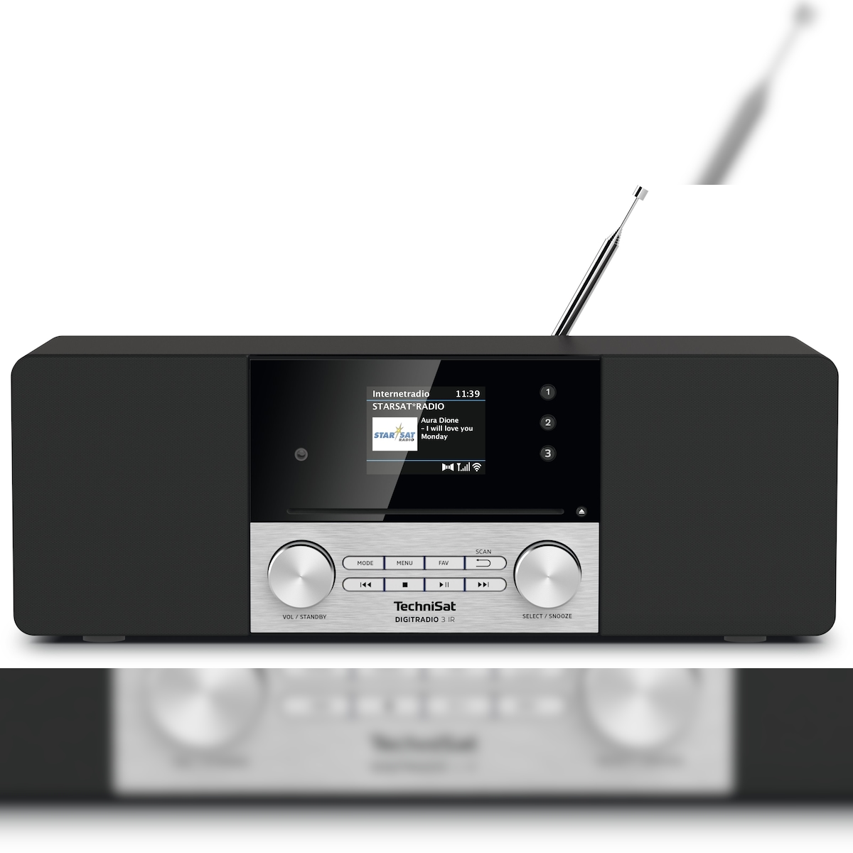 Zustand: Neu - Internet-Radios Internet Radios - TechniSat TechniSat Digital GmbH - 0000/3956 - EAN: 4019588039568 - Qualität Made in Germany: Entwicklung und Produktion des empfangsstarken Digitalradio erfolgen in Deutschland nach höchsten Qualitätsstandards von TechniSat - Klang in Perfektion Hervorragender Stereosound: Powerd by Elac mit 2x10 W Lautsprechern überzeug das Radio durch ein hochwertiges Holzgehäuse mit Aluminium-Front und intuitive Bedienung am Gerät oder per Fernbedienung Volle Flexibilität: Musik per Bluetooth vom Handy oder Tablet streamen, Internetradio, MP3 per USB (inkl. Ladefunktion) oder AUX in. Radiowecker mit Sleeptimer. CD-Spieler mit MP3 und Resume-Funktion: Der CD Player startet nach dem Ausschalten beim erneuten Einschalten wieder an der zuletzt gehörten Stelle - Optimal für Fans von Hörbüchern Lieferumfang: Stereo-Radio DIGITRADIO 3 IR, Teleskopantenne, Fernbedienung inkl. Batterien, Bedienungsanleitung, Produktmaße (BxHxT): 38 x 13 x 16,8 cm - bei Amazon.de Dieses hochwertige tragbare Digitalradio bietet eine umfangreiche Ausstattung und ist eine Premium-Option. ![]() TechniSat DigitRadio 3 IR Tragbar Digital Schwarz, Silber