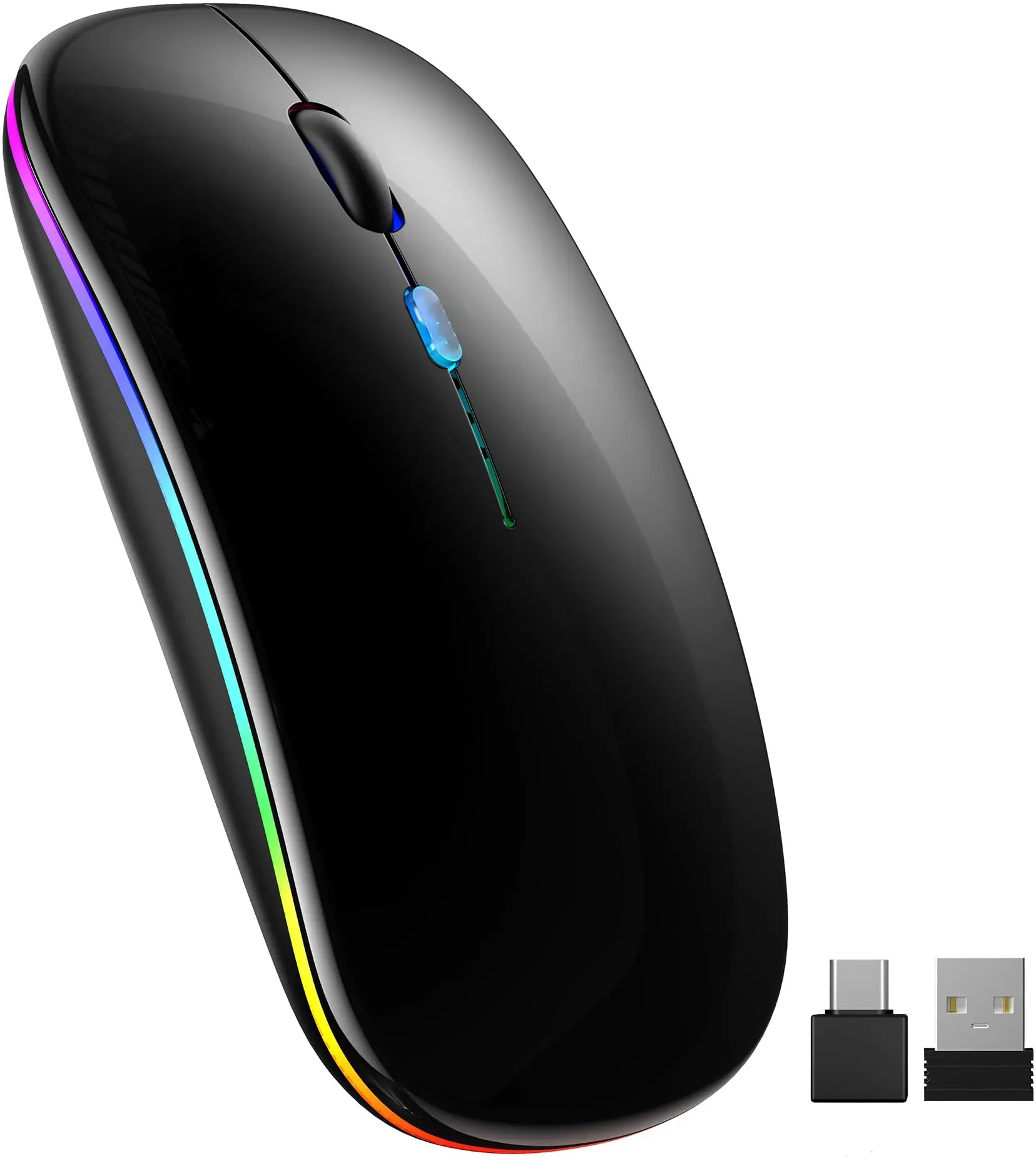 Verfügbarkeit: Auf Lager - Kategorie: Mäuse - TeckNet - GTIN:5056243632299 - Kabellose Dual-Mode-Maus Die kabellose Dual Mode Maus (Bluetooth 5.1 + 2,4 GHz USB) ermöglicht Ihnen den freien Wechsel zwischen zwei Geräten ohne Verbindungsverzögerung und sorgt so für reibungsloses Arbeiten. Im Lieferumfang ist außerdem ein Typ-C-Adapter für verbesserte Kompatibilität mit verschiedenen Geräten enthalten 7-Farbiger LichtstreifenFunkmaus halten Sie den RGB-Lichtstreifenschalter gedrückt, um durch 7 Lichtfarben zu blättern und Ihrer Arbeit oder Ihrem Spiel Farbe zu verleihen. 3 einstellbare DPI-Stufen ermöglichen Ihnen die freie Steuerung der Bewegungsgeschwindigkeit der Maus Leise und TragbarDiese leise mouse reduziert Klickgeräusche um 90 % und sorgt so für konzentriertes und produktives Arbeiten. Das schlanke und kompakte Design der pc maus kabellos (mit einem Gewicht von nur 53 Gramm) passt problemlos in Ihre Hosentasche und spart Platz in Ihrer Laptoptasche. Ideal für Vielreisende Extrem Lange Akkulaufzeit Diese wiederaufladbare Maus verfügt über einen eingebauten 500-mAh-Akku, der in nur 2 Stunden vollständig aufgeladen werden kann. Mit eingeschalteter RGB-Beleuchtung hält sie bis zu einem Monat. Einfaches Aufladen mit dem mitgelieferten Ladekabel (Ladegerät nicht im Lieferumfang enthalten) so entfällt der lästige Batteriewechsel Breite Kompatibilität Diese bluetooth maus ist kompatibel mit Windows 7 und höher, Linux, iOS und Android, ... Für 13.99 Euro erhalten Sie hier eine wiederaufladbare RGB Dual Mode Maus mit Bluetooth 5.1 und 2.4 GHz USB, die eine gute Balance zwischen Preis und modernen Funktionen bietet. ![]() ![]() TECKNET Kabellose Bluetooth Maus (Bluetooth 5.1 + 2,4 GHz USB), Wiederaufladbare RGB Dual Mode Maus Kabellos, 1600 DPI Optische Abtastung Funkmaus für Laptops, iPads, Desktops und Macs, Schwarz