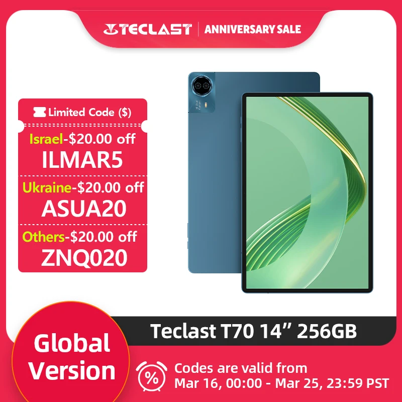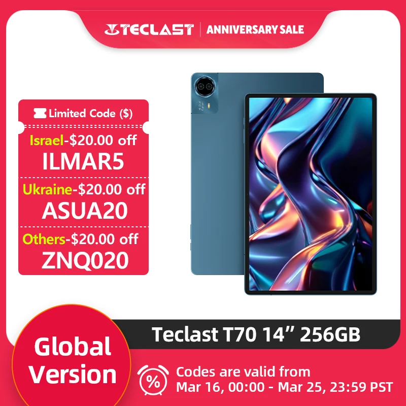 Der angezeigte Preis könnte seit dem letzten Update gestiegen sein - Teclast T70 Tablets 14 Zoll 2K Display 128GB 256GB MediaTek Helio G99 10000mAh Akku LTE Dual SIM Android 15 Tablet Globale Version - Zustand: NEW - bei Aliexpress DE - gefunden von Buycentral ![]() Teclast T70 Tablets 14 Zoll 2K Display 128GB 256GB MediaTek Helio G99 10000mAh Akku LTE Dual SIM Android 15 Tablet Globale Version
