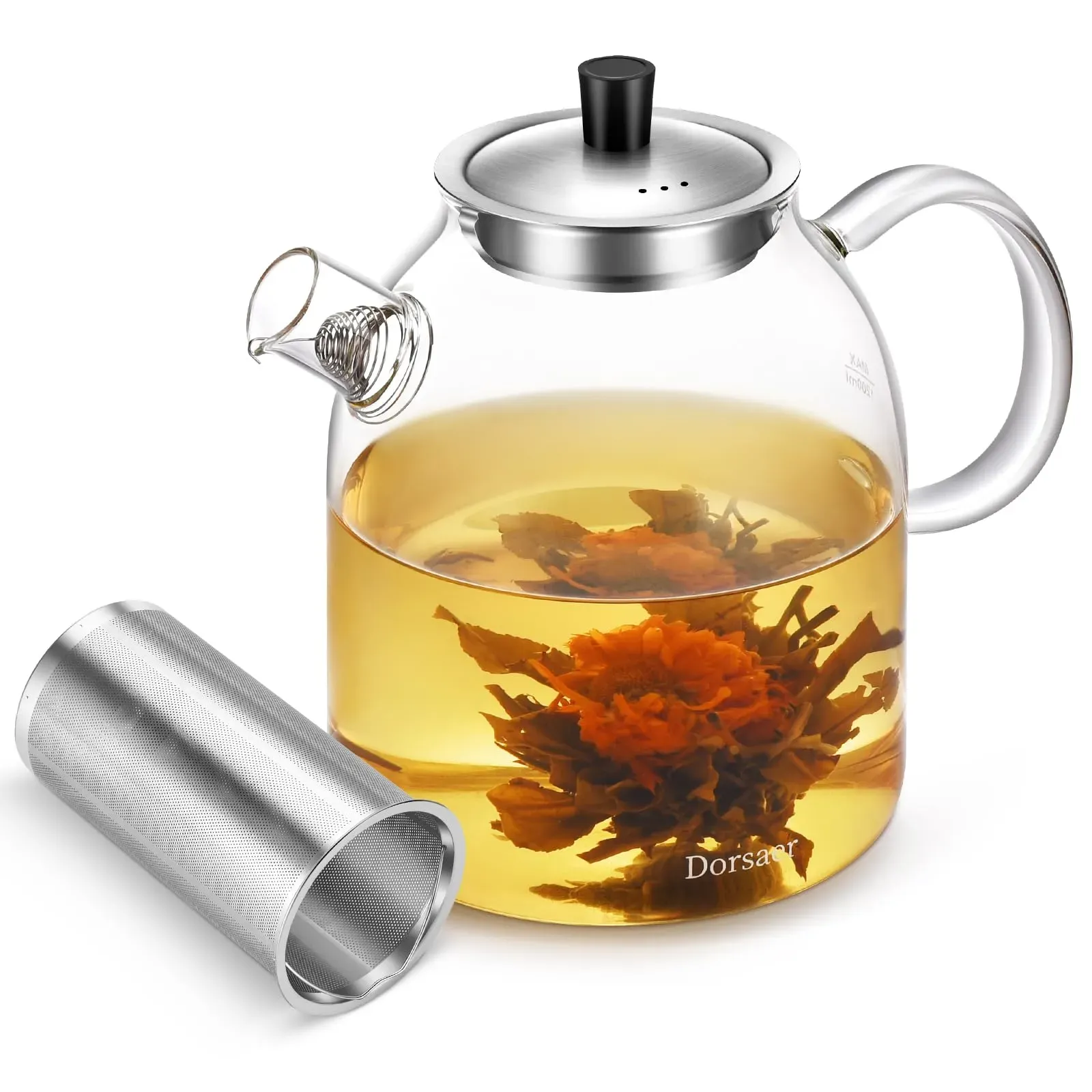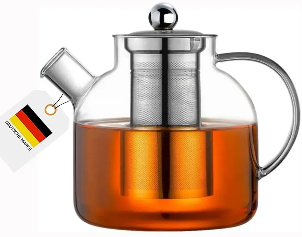 Auf Lager Versand durch Amazon1500ML Teekanne aus Glas, Glasteekanne aus Hitzebeständigem Borosilikatglas, Teekanne Glas mit Siebeinsatz, Geeignet zum Aufbrühen von Tee, Blumentee