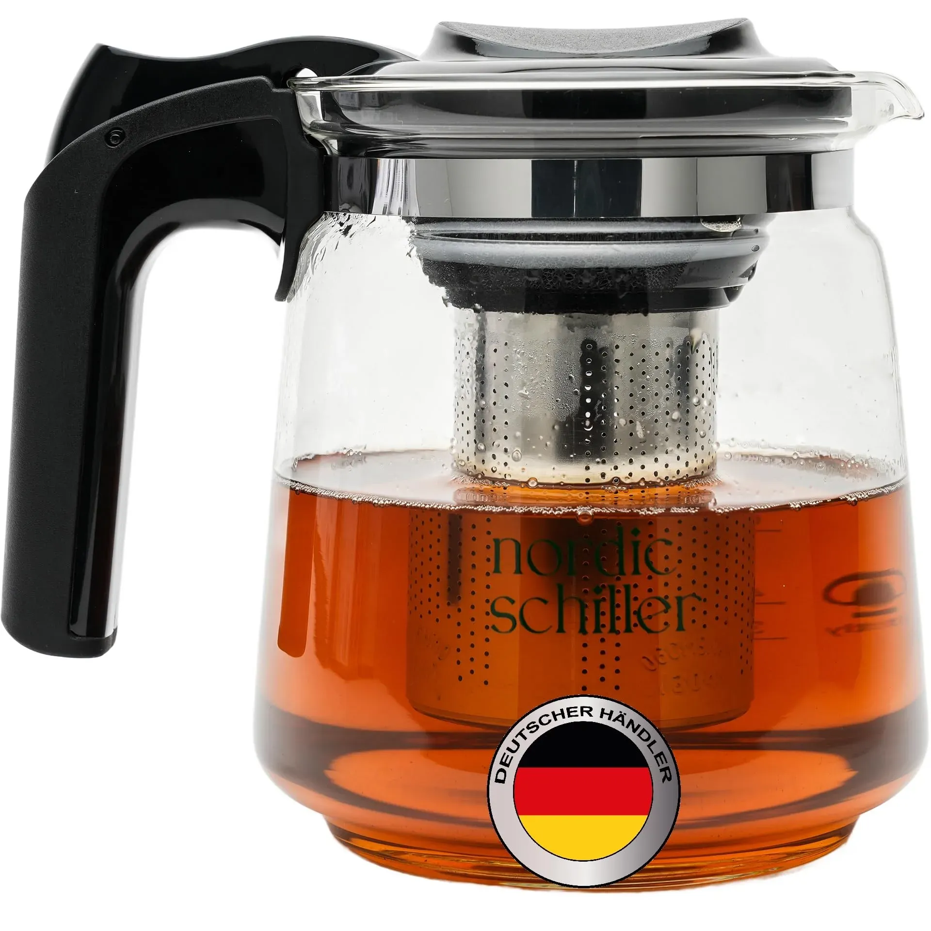 Kategorie: Teemaschinen - nordic schiller - GTIN:4262358843906 - HOCHWERTIGER GLAS TEEBEREITER : NORDIC SCHILLER Glas Teekanne mit elegantem Design, Fassungsvermögen von 1,5 Litern für ausreichend Tee. KOMMT MIT : Hitzebeständiges Borosilikatglas für sichere Anwendung. Abnehmbarer Edelstahlfilter für eine klare Teesiebung. Robuster Griff und Ausgießer für einfaches Gießen. SPüLMASCHINENFEST : Leicht zu reinigen und spülmaschinenfest. IDEALES GESCHENK : Ein stilvolles Geschenk für Teeliebhaber und -liebhaberinnen. Ideal zum muttertag und weinnachten. UNVERZICHTBAR FüR IHR ZUHAUSE : Ideal zum Servieren von Tee bei Teepartys oder Versammlungen. Geeignet für verschiedene Teesorten wie Schwarztee, Grüntee und Kräutertee. - 20,96 Euro bei Amazon Marketplace Home - gefunden von billiger.de Die Happy Lemuro Teekanne zeichnet sich durch eine erhöhte Glasstärke für bessere Isolierung aus. ![]() ![]()