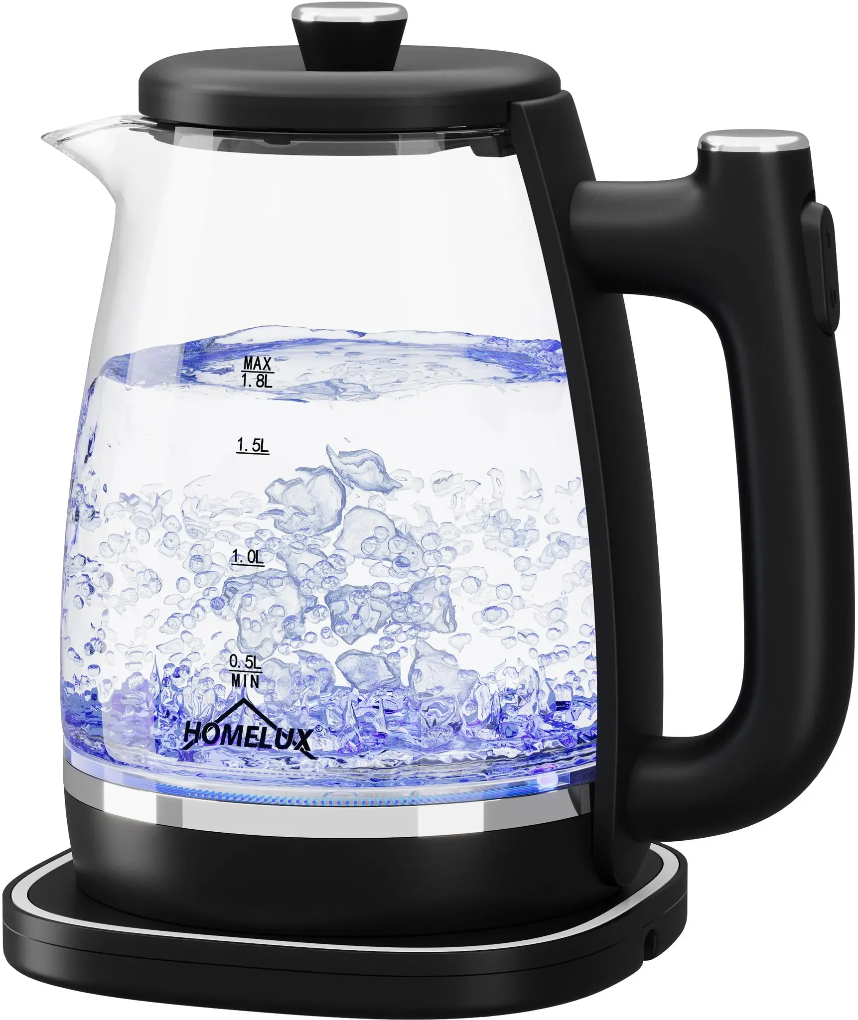 Verfügbarkeit: Auf Lager - Kategorie: Wasserkocher - Homelux - GENIESSEN SIE GESUNDES WASSER: Der homelux wasserkocher glas ist aus hochwertigen Materialien hergestellt. Das starke und langlebige Borosilikatglas ist sehr stabil, widerstandsfähig gegen Hitze und Kälte, nicht leicht zu brechen und leicht zu reinigen. wasserkocher led eingebaute Heizplatte aus lebensmittelechtem Edelstahl, ungiftig, geruchlos und BPA-frei, damit Sie immer gesundes Trinkwasser erhalten! 1.8L Wasserkocher & 1800W Wasserkocher: 1800 Watt glaswasserkocher starke Leistung, um schnelles Kochen zu erreichen, frisches Wasser zu trinken, ohne zu warten.1.8L große Kapazität Design kann den Wasserbedarf der ganzen Familie zu erfüllen, keine Notwendigkeit, Wasser häufig zu kochen, und müssen nicht über plötzliche Besucher zu kümmern. Sie können damit schnell Kaffee, Tee, Haferflocken usw. aufbrühen und die Wartezeit verkürzen. SORGEN SIE FüR DIE SICHERHEIT IHRER FAMILIE: Unser Wasserkocher aus Glas verfügt über eine präzise Temperaturregelung, Sie müssen nicht aufpassen, der Strom wird automatisch abgeschaltet, wenn das Wasser kocht. Mit der Anti-Trocken-Kochfunktion schaltet sich der Wasserkocher automatisch ab, wenn die gewünschte Temperatur oder die Wassermenge nicht ausreichend ist.Der Glas kessel mit Cold-Touch-Griff verhindert Verbrühungen und ist sicher in der Anwendung. EINFACH ZU BENUTZEN: Der abnehmbare Deckel und die große öffnung machen das Reinigen und Befüllen des ... Ein doppelwandiger Edelstahl-Wasserkocher mit Temperatureinstellung und BPA-frei, der leise arbeitet und die Temperatur gut hält. ![]() ![]() Balter Home Balter Edelstahl Wasserkocher mit Temperatureinstellung, 40°C-100°C, Doppelwand, BPA frei, elektrischer Wasserkocher, Teekocher Kompakt, 1,7L, 2200W, leise, Schwarz