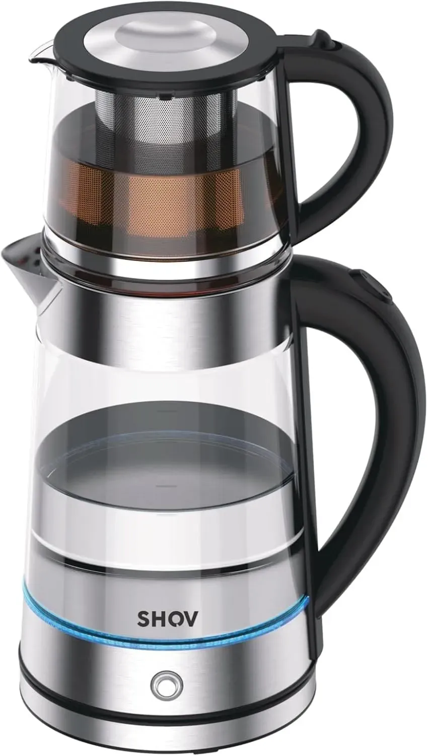 Gesamtsortiment Haushalt Küche Getränkezubereitung Wasserkocher - EAN:4062861848548 - Der Arendo Best Tea ist ein innovativer elektrischer Wasserkocher, der sowohl Funktionalität als auch ansprechendes Design vereint. Mit einem Fassungsvermögen von 1,8 Litern und einer Leistung von 2200 Watt ist er ideal für die Zubereitung von Tee und anderen heissen Getränken. Der Wasserkocher besteht aus hochwertigem Borosilikatglas und Edelstahl, was nicht nur für eine ansprechende Optik sorgt, sondern auch für Langlebigkeit und Sicherheit. Ein integriertes Edelstahl-Teesieb ermöglicht eine direkte Teezubereitung, während die präzise Temperatureinstellung in 10°C-Schritten von 40°C bis 100°C eine optimale Zubereitung für verschiedene Teesorten gewährleistet. Die farbige LED-Anzeige visualisiert die gewählte Temperatur und die Warmhaltefunktion sorgt dafür, dass das Wasser für längere Zeit auf der gewünschten Temperatur bleibt. Mit zusätzlichen Sicherheitsfunktionen wie Überhitzungs- und Trockengehschutz ist der Arendo Best Tea eine zuverlässige Wahl für Teeliebhaber. - Präzise Temperatureinstellung in 10°C-Schritten von 40°C bis 100°C - Farbige LED-Anzeige zur Visualisierung von sieben Temperaturbereichen - Integriertes Edelstahl-Teesieb für die direkte Teezubereitung - Warmhaltefunktion für langanhaltende Temperatur - Sicherheitsfunktionen wie Überhitzungs- und Trockengehschutz. - gefunden von Kelkoo Ein vielseitiger 2-in-1 Teekocher und Wasserkocher aus Glas, der sich ideal für die Zubereitung von türkischem Tee eignet. ![]() ![]() Shov Elektrischer Glas Wasserkocher 2-in-1 €“ Teemaschine & Wasserkocher, Teekocher elektrisch, 1,7 L Wasserkocher & 0,8 L Teekanne, Türkischer Teekocher, Teemaschine Elektrisch €“ Caydanlik