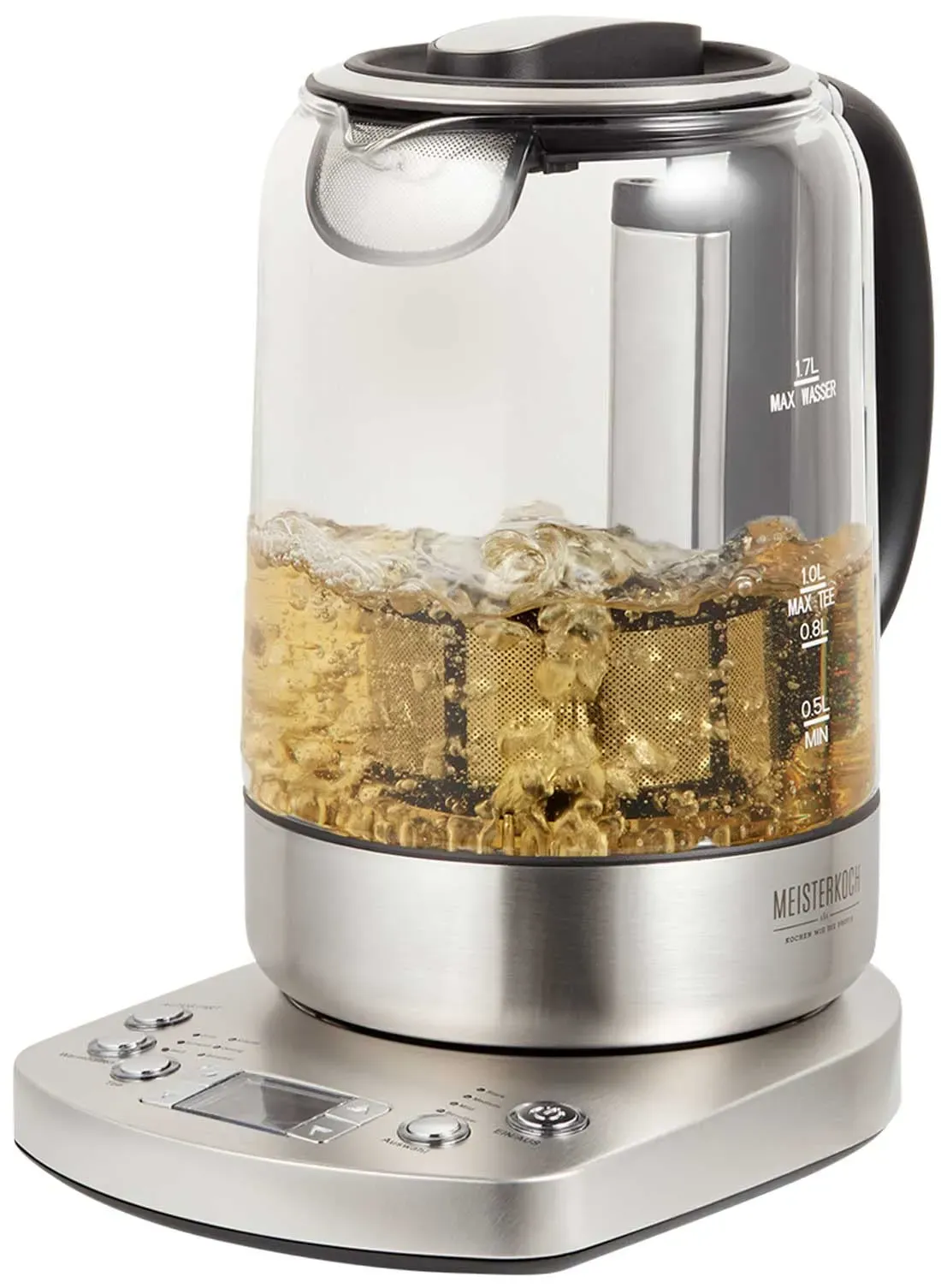 Verfügbarkeit: lieferbar-in 3-4 Werktagen bei dir - Kategorie: Teemaschinen - Mulex - GTIN:4255829508923 - Farbe & Material Farbe , Weiß, Product Compliance WEEE-Reg.-Nr. DE , 99706474, - 84,95 Euro bei OTTO - gefunden von billiger.de Ein fortschrittlicher Teekocher mit Temperatureinstellung, Absenkautomatik des Siebeinsatzes und LED-Licht, speziell für verschiedene Teesorten. ![]() ![]() MEISTERKOCH TK-170 TWE | Teekocher elektrisch mit Temperatureinstellung & Absenkautomatik des Siebeinsatzes, aus Glas mit Warmhaltefunktion, Brühzeit-Einstellung & LED Licht abgepasst auf Teesorten