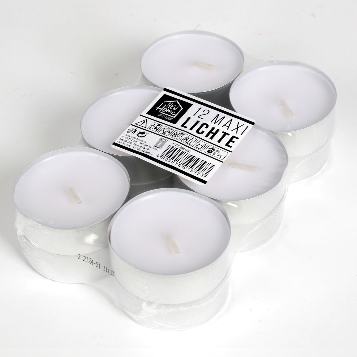 lieferbar-in 5-6 Werktagen bei dirKCB Teelicht Maxi-Teelichter 12er-Set 8 Std. Brenndauer XL Jumbo Teelichte Kerzen (12-tlg)