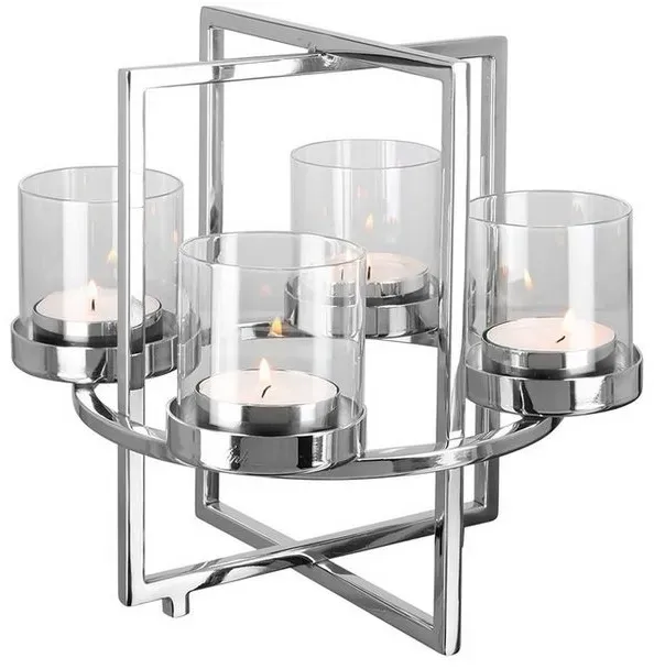 lieferbar-in 6-7 Werktagen bei dirFink Adventskranz NORMAN Kranz-Leuchter 4-flammig - H. 28cm x 32cm - silber - Edelstahl, Eleganter Teelichthalter Kerzenständer - Stilvoller Leuchter für Innen silberfarben