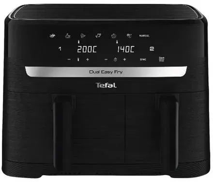 Kategorie: Fritteusen - Tefal - GTIN:3045380025783 - Leistung: 2700 Watt Kapazität: 8,3 L (linke Schublade 5,2 L + rechte Schublade 3,1 L) Mühelose Reinigung mit spülmaschinenfesten Doppelschubladen und Rost 7 voreingestellte Programme in weniger als 15 Minuten komplette, hausgemachte Mahlzeiten - 174,99 Euro bei voelkner Marktplatz - gefunden von billiger.de ![]() ![]() Tefal EY9018 Dual Easy Fry Doppelkammer Heissluftfritteuse (EY901810)