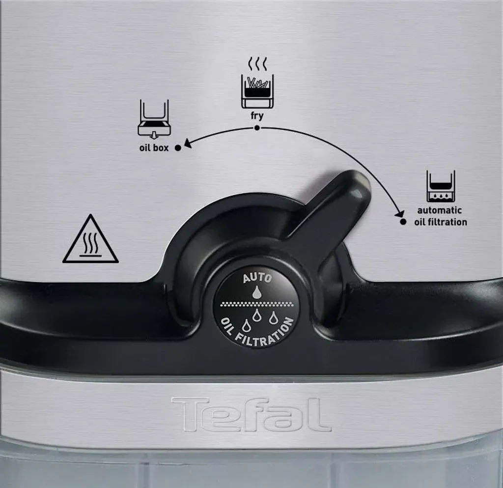 Auf Lager Versand durch AmazonTefal Oleoclean Compact Elektrische Fritteuse, 2 L Öl-Kapazität, Fritteuse mit Ölfiltration, spülmaschinenfeste Teile, Sichtfenster, einstellbare Temperatur, schwarz, Edelstahl, FR7016