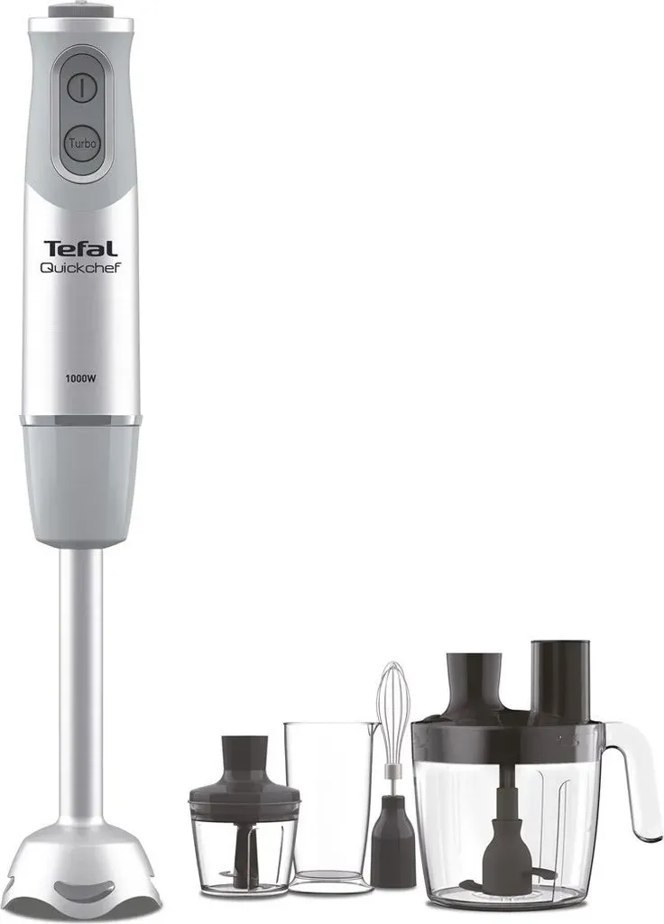 Auf Lager Versand durch AmazonTefal Quickchef+ 3-in-1 XL Stabmixer/Zerkleinerer/Schneebesen, 1000 W, intuitive Geschwindigkeitsregelung, Turbo-Taste, Powelix-Messer-Technologie, Edelstahl, Grau, HB67MB30