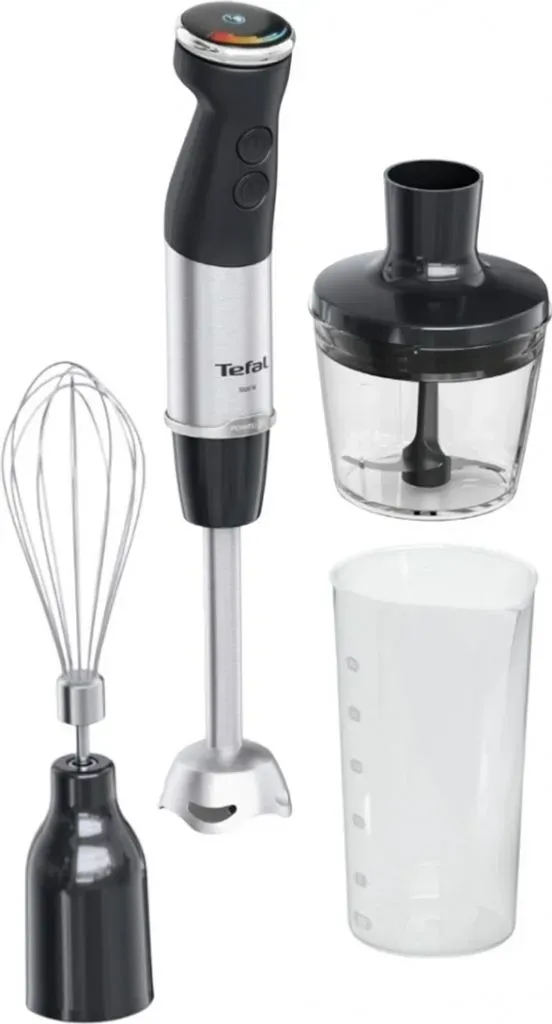 Verfügbarkeit: 3-4 Werktage - Kategorie: Mixer - Tefal - GTIN:3016667291771 - Tefal HB67MB Quickchef Stabmixer Set, HB67MB30 Der Stabmixer, für leistungsstarkes Mixen im Handumdrehen Der Quickchef+ Stabmixer von Tefal sorgt für außergewöhnliche Leistung und absolute Kontrolle. Die exklusive Powelix-Technologie sorgt für unglaublich geschmeidige und bis zu 30 % schnellere Ergebnisse* €“ für eine cremige und gleichmäßige Textur, die selbst bei den härtesten Zutaten mühelos gelingt! Entdecken Sie die unendliche Vielseitigkeit mit einem kompletten Kochset: XL Zerkleinerer-Mixer, Schneebesen und Dosierbecher. VorteileSchnelle Ergebnisse Die Powelix-Klingentechnologie sorgt für bis zu 30 % schnellere Ergebnisse*, für eine perfekte cremige Textur, die mühelos gelingt €“ selbst bei den härtesten Zutaten.XL Food Processor Dieser 5-in-1-Aufsatz mixt Smoothies, rührt leichte Teige, zerkleinert Eis, hackt, zerkleinert Fleisch und vieles mehr - für die totale Vielseitigkeit mit einer XL-Kapazität.Silence-Modus ** **verglichen mit der Turbo-GeschwindigkeitVollständiges Zubehörpaket Bereiten Sie mit dem Schneebesenaufsatz perfektes Eiweiß und hausgemachte Mayonnaise zu, und verwenden Sie den Dosierbecher zum leichteren MixenKinderleichter Drehknopf Der einfach zu bedienende Drehknopf sorgt für 20 verschiedene Geschwindigkeitsstufen und Turbomodus im Handumdrehen und bietet die Möglichkeit, die Geschwindigkeit während des Mixvorgangs zu ändern.Fortschrittliche ... Das teuerste Modell in der Liste, das eine Premium-Ausstattung und Leistung verspricht. ![]() ![]() Tefal Quickchef+ HB67G830 blender 0.8 L Immersion blender 1000 W Black, Stainless steel - Schwarz/Silber