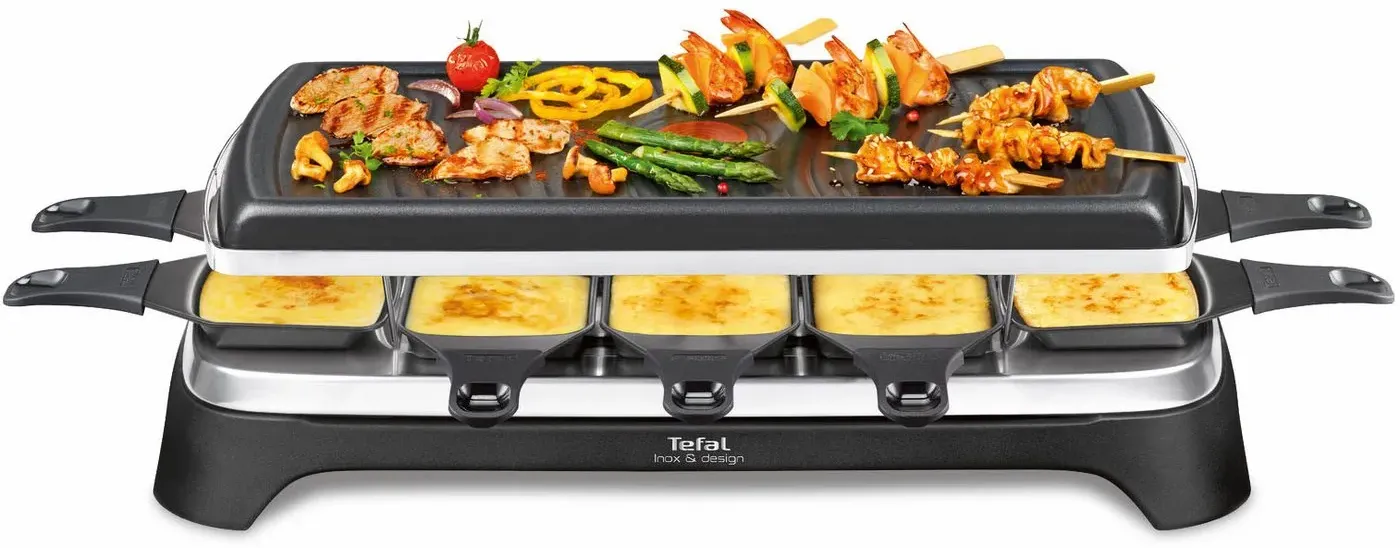 31 Händlerangebote bei billiger.de - Kategorie: Raclettes - Tefal - Das RE4588 Raclette von Tefal ist mit 10 antihaftversiegelte Raclette-Pfännchen ideal für die große Party-Runde! Mit dem RE4588 vereint man Qualität und Raffinesse auf dem Tisch. - GTIN:3168430851900 Coolblue.de listet das Tefal Gourmet 10 Inox & Design RE4588 für 65.90 Euro, was ebenfalls ein sehr gutes Angebot ist. ![]() Tefal Gourmet 10 Inox & Design RE4588