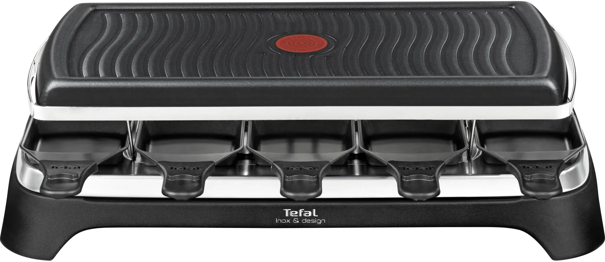 Auf Lager Versand durch AmazonTefal Raclette Grill Ambiance, Raclette 10 Personen, inkl. Tischgrill-Funktion, Grillplatte antihaftbeschichtet + spülmaschinengeeignet, abnehmbares 2 Meter-Kabel, schwarz, Edelstahl, 1350W, RE4588