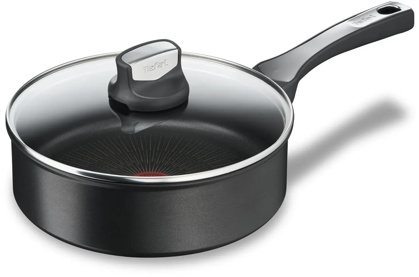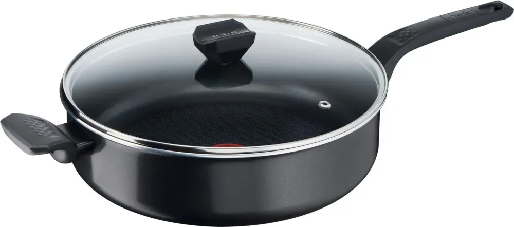 lieferbar-in 1-2 Werktagen bei dirTefal Schmorpfanne Hard Titanium Pro, Aluminium, Induktionspfanne, Temperaturanzeiger, Made In France, Glasdeckel,28 cm schwarz