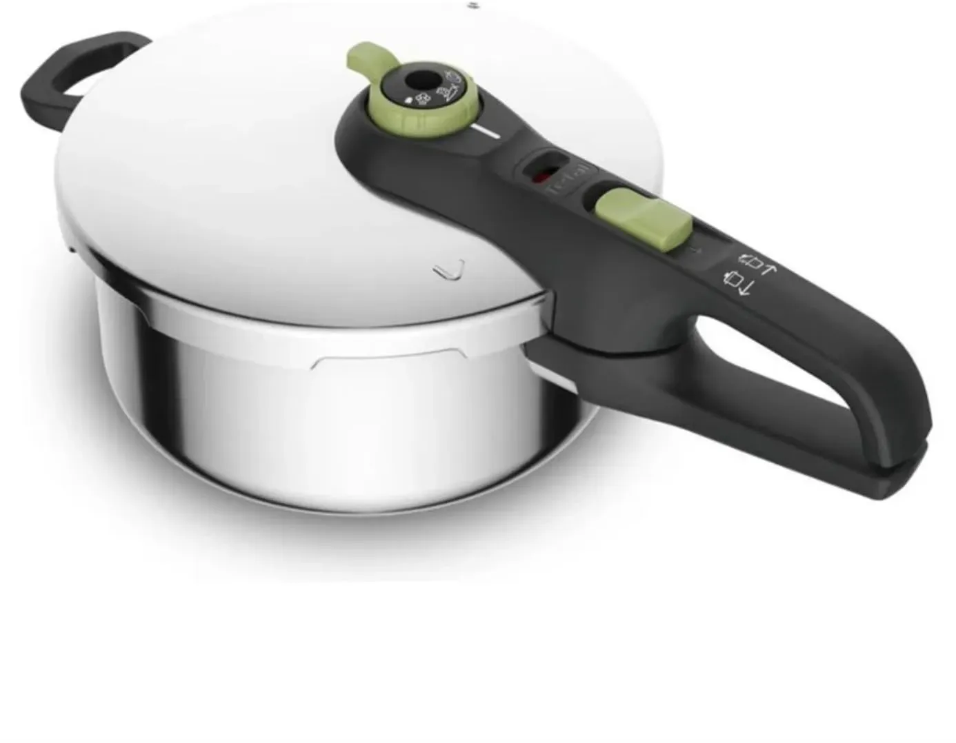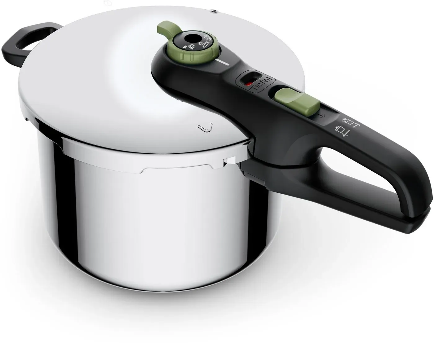 Zustand: Neu - Schnellkochtöpfe - Tefal - P2580400 - EAN: 3045384363485 - Hochwertiges Material, Langlebiger Edelstahl Innen und Außen mit starkem Induktions-Kapselboden für eine perfekte und gleichbleibende Wärmeverteilung und optimale Planstabilität 2-Stufen-Garregler, Intensivstufe mit 117°C für beispielsweise Fleisch und Fisch Schonstufe mit 112°C für beispielsweise Gemüse, Reis, Kartoffeln Praktischer Griff, Ein langer Griff für komfortables Öffnen/Schließen mit automatischem Schließsystem (Griff rastet hörbar ein, wenn er richtig geschlossen ist), sowie einem kurzen Gegengriff zum sicheren Transport Herdarten Kompatibilität, Für alle Herdarten geeignet, einschließlich Induktion (Gas, Elektro, Keramik, Induktion) Secure Trendy von Tefal ermöglicht eine besonders einfache Reinigung, Der Schnellkochtopf ist spülmaschinengeeignet (außer Deckel, Timer), zur längeren Haltbarkeit wird jedoch eine Handwäsche empfohlen - 21 Händler im amazon.de Marketplace Dieser 6-Liter-Schnellkochtopf ist ein beliebtes Modell mit zwei Garstufen und für alle Herdarten geeignet. ![]() ![]() Tefal Secure Trendy Schnellkochtopf induktion 6l, 2-Stufen-Garregler: Intensivstufe 117°C, Schonstufe 112°C, Induktions-Kapselboden, für alle Herdarten, Edelstahl/Schwarz/Grün, P2580703