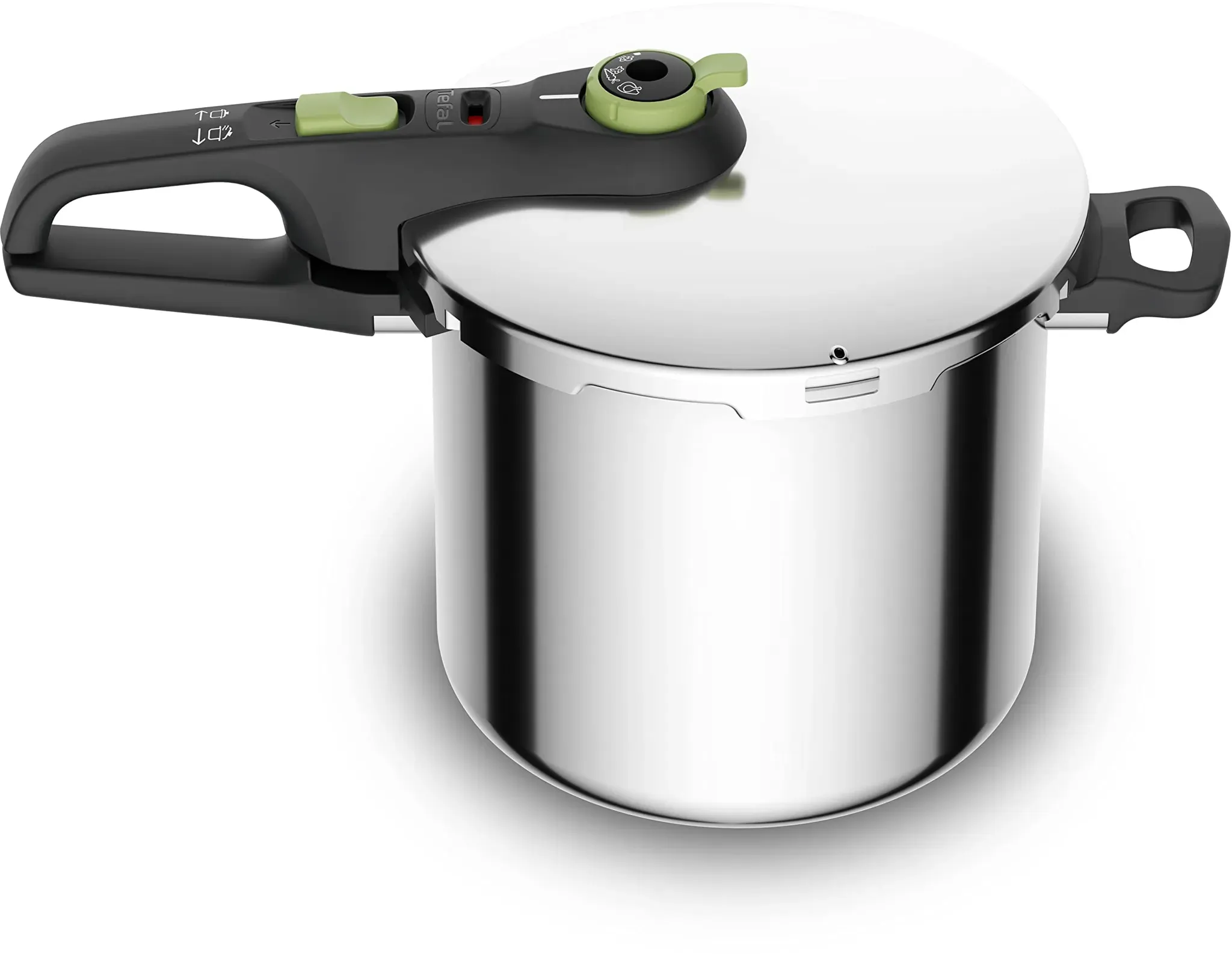 8 Händlerangebote bei billiger.de - Kategorie: Schnellkochtöpfe - Tefal - Hochwertiges Material, Langlebiger Edelstahl Innen und Außen mit starkem Induktions-Kapselboden für eine perfekte und gleichbleibende Wärmeverteilung und optimale Planstabilität 2-Stufen-Garregler, Intensivstufe mit 117 C für beispielsweise Fleisch und Fisch Schonstufe mit 112 C für beispielsweise Gemüse, Reis, Kartoffeln Praktischer Griff, Ein langer Griff für komfortables öffnen/Schließen mit automatischem Schließsystem (Griff rastet hörbar ein, wenn er richtig geschlossen ist), sowie einem kurzen Gegengriff zum sicheren Transport Herdarten Kompatibilität, Für alle Herdarten geeignet, einschließlich Induktion (Gas, Elektro, Keramik, Induktion) Secure Trendy von Tefal ermöglicht eine besonders einfache Reinigung, Der Schnellkochtopf ist spülmaschinengeeignet (außer Deckel, Timer), zur längeren Haltbarkeit wird jedoch eine Handwäsche empfohlen - GTIN:3045384363461 Dieser 8-Liter-Schnellkochtopf mit Korb ist ein sehr beliebtes Modell und bietet viel Platz für größere Mengen. ![]() ![]() Tefal P2584402 Secure Trendy Schnellkochtopf 8 L mit Korb | 2-Stufen-Garregler: Intensivstufe 117°C, Schonstufe 112°C | Induktions-Kapselboden | für alle Herdarten | Edelstahl/Schwarz/Grün