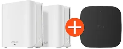 ![]() ![]() Glasfaser-Bundle aus Asus ZenWiFi AiMesh Extendable Router 2er Pack + Telekom Glasfaser Modem 2