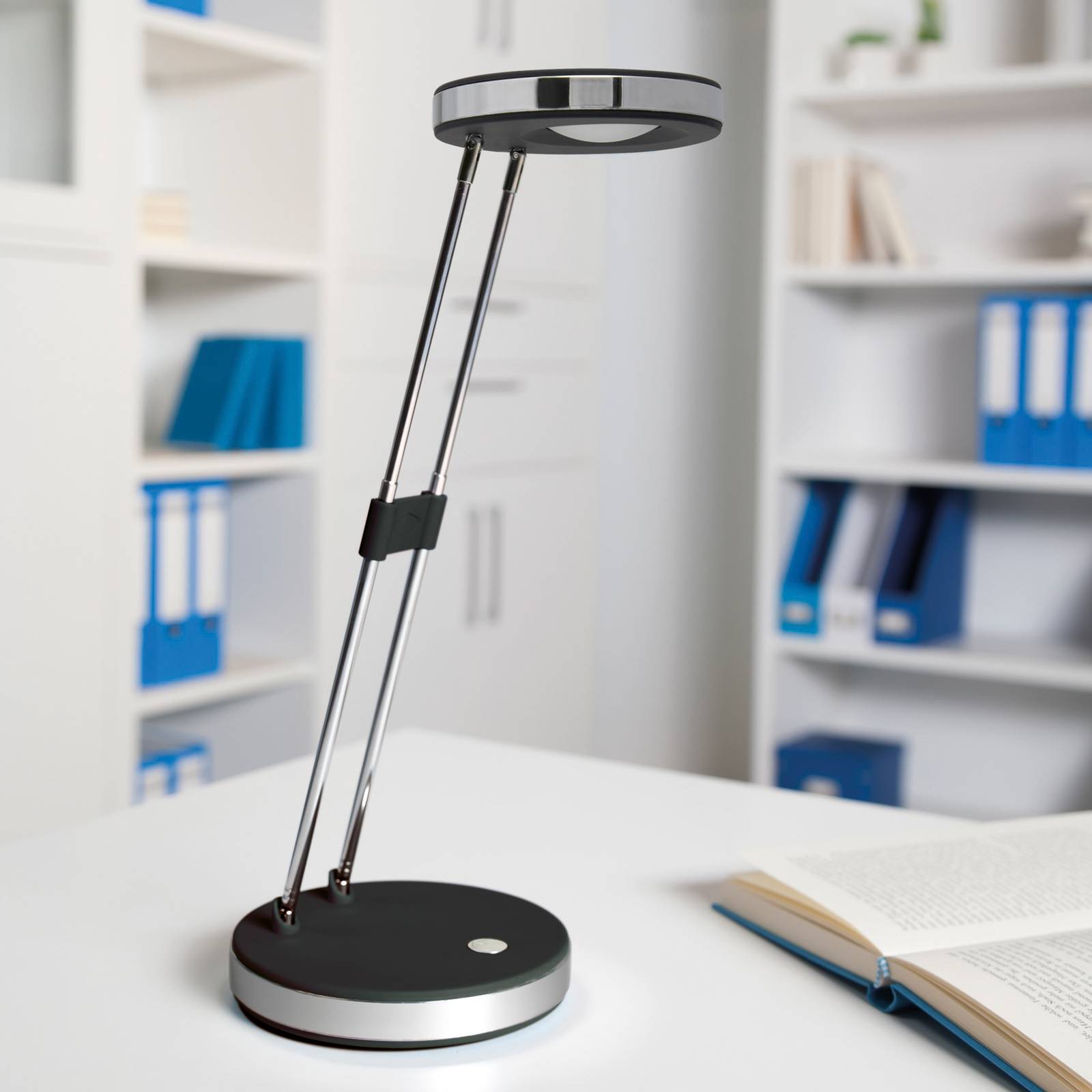 Auf Lager Versand durch AmazonMAUL Schreibtischlampe MAULpuck 13x13x37cm | Moderne LED Lampe mit 1.260 Lux und 6.500 Kelvin | Tageslichtlampe mit Standfuß | Höhenverstellbare Tischlampe mit Teleskoparm | Schwarz