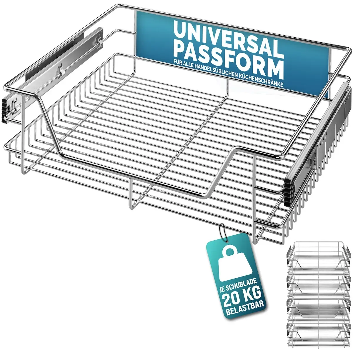 Regale Eisenwaren Möbelbeschläge Schubladen & Zubehör Schubladen Aufbewahrung - EAN:0762418539243 - Teleskopschublade - Totalmaße (inkl. Schienen): ca. 570 x 440 x 140 mm, Material: Metall verchromt, es hat genug Platz für Gewürze, Töpfe, Geschirr etc. Lagerung; Belastbar:20KG Beseitigen Sie Unordnung - Maximieren Sie den Platz in schwer zugänglichenSchränken und unter der Spüle.Einfache Zugänglichkeit für alle Elemente in Ihrer Küche, Speisekammer, Badezimmer und Waschküche Schränke Einfache Montieren - Leichte und schnelle Erreichbarkeit. Proprietäres Easy Mount Design wird in wenigen Minuteninstalliert. Das nötige Montagematerial ist im Lieferumfang enthaltend. Teleskop Funktion - Ausziehbar mit kugelgelagerter Teleskop-Schiene, Durch die leichtläufige Teleskop-Funktion ziehen Sie die Schublade einfach aus dem Schrank heraus und entnehmenalles ohne lästige Verrenkungen. Aufbewahrungshilfe - Perfekte Aufbewahrungslösung für Schränke für Küche, Speisekammer, Badezimmer und Waschküche, Schlafzimmerschrank oder Werkstatt Mit diesem Regalkorb können Sie problemlos Gegenstände in den - gefunden von Kelkoo Diese Teleskopschublade ist eine gute Option zum Nachrüsten für 60cm breite Küchenschränke. ![]() Teleskop Schublade Teleskopschublade Küchenschublade für 60cm zum Nachrüsten