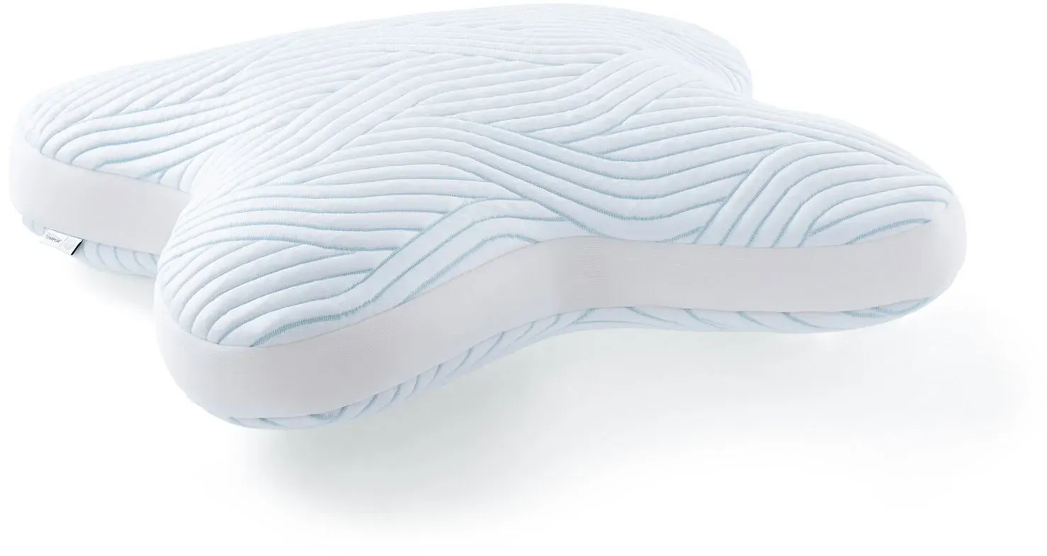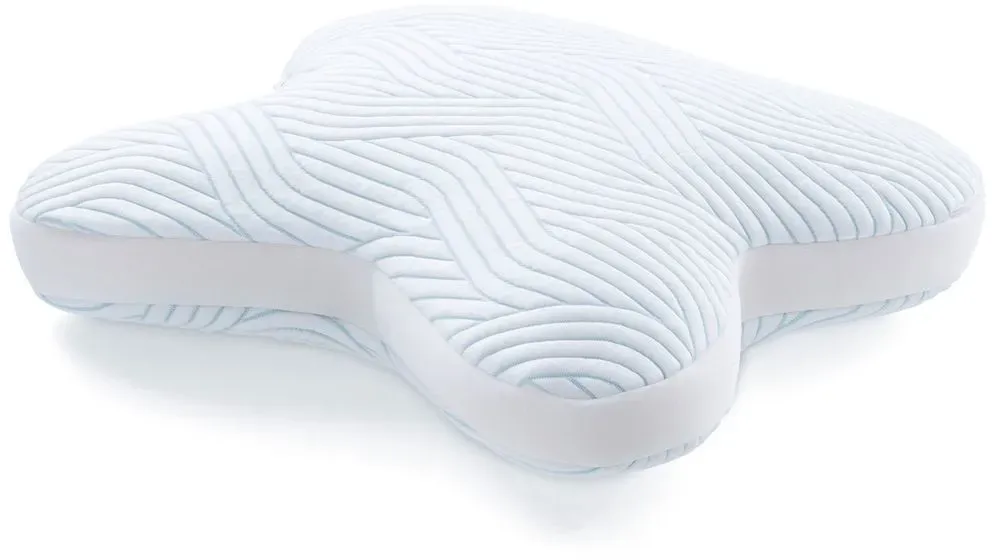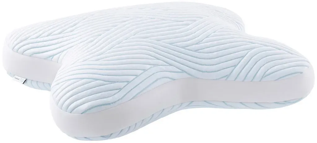 Tempur - EAN: 5714714359129 - Einzigartiges Tempur Schlafkissen 'ALL AROUND'. Das Tempur Schlafkissen 'ALL AROUND' ist für jede Liegeposition geeignet und bereitet auch Bauchschläfern optimales Schlafvergnügen. Seine kleeblattähnliche Form (B/T ca. 60 x 50 cm, Gewicht 2,1 kg) ist mit einem viskoelastischen Kern (Füllgewicht 1.500 Gramm) ausgestattet, der angenehm weich ist. Dadurch passt sich das Modell Ihrer Kopf-Nacken-Partie ideal an und wirkt zugleich druckentlastend. Umgeben ist das Innenleben von einem SmartCool-Textilbezug der ganzjährig für ein ausgeglichenes Schlafklima sorgt. Bei Bedarf waschen Sie den Bezug maschinell bei bis zu 40 C. Betten Sie Ihr Haupt auf das Tempur Schlafkissen 'ALL AROUND'! - bei zurbrueggen.de - aus Yadore Produktdaten Das Tempur All-Around SmartCool Schlafkissen von Tchibo.de für 139.99 Euro ist eine zuverlässige Option mit der SmartCool-Technologie. ![]() Tempur All-Around SmartCool Schlafkissen