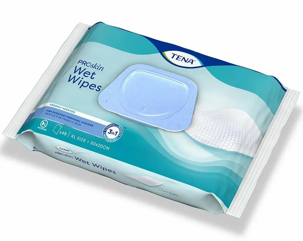 Essity Health and Medical Solutions - Diese weichen und kräftigen Pflegetücher sind mit einer Emulsion befeuchtet und reinigen, pflegen und schützen die Haut in nur einem Arbeitsschritt.Vielseitige HautpflegeKein Abwaschen erforderlichPraktisch und bequemErhältlich in 22x29 cmHygienische ReinigungDas sogenannte 'Clean Touch-System' vermeidet das Risiko, das nächste Tuch in der Packung zu berühren - und senkt damit die Gefahr von Kreuzkontaminationen. Diese Einweg-Feuchttücher verhindern Kreuzinfektionen durch Mehrwegtücher.Fördert die HautgesundheitHilft, den natürlichen ph-Wert der Haut zu erhalten. Dermatologisch getestet und alkohol- sowie seifenfrei.Mild parfümiertDie Haut fühlt sich frisch und sauber an und ist frei von unangenehmen Gerüchen. - bei sanicare.de - aus Yadore Produktdaten ![]() ![]() TENA PROskin Wet Wipes 3in1 48 St Tücher