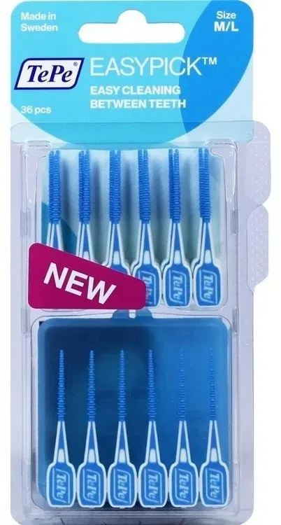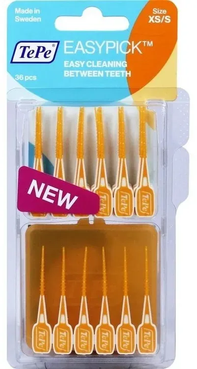 0,12 /Stück - Kategorie: Arzneimittel - TePe - GTIN:7317400017303 - PZN:10731992 - TEPE EasyPick XS/S orange 36 St - 4,46 Euro bei Preisapo - gefunden von billiger.de Dieses Angebot ist mit 4.56 Euro sehr preiswert für die GröÃ?e XL. ![]() ![]() TePe D-A-CH GmbH TePe EasyPick Interdentalbürsten, Lila XL 36 St.