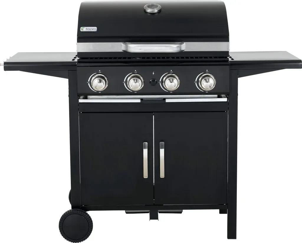 10 Händlerangebote bei billiger.de - Kategorie: Grills - Tepro - Gasgrill 'Mayfield' 4-Brenner 3153 - 1733721 Gemeinsam mit Freunden und Familie ein gemütliches Barbecue mit leckeren Grillspeisen zu veranstalten ist eine beliebte Freizeitbeschäftigung. Der Gasgrill 'Richfield' ist der perfekte Begleiter für Veranstaltungen wie diese. Der Grill begeistert durch sein schickes aber schlichtes Design. Die Halterung im Trolley dient der Gasflasche als praktischer Aufbewahrungsraum. Somit ist die Flasche gut verstaut und stört auch optisch nicht. Mit zwei Türen ist ein leichter Zugang zum Trolleyinneren gewährleistet. Die große Grillfläche bietet Raum für viele Grillwünsche. Die Garzeiten für verschiedenes Grillgut abzuschätzen ist oftmals nicht einfach. Die integrierte Warmhaltefläche hält die gegrillten Speisen warm, sodass alle Gäste zur gleichen Zeit essen können. Praktische Besteckhaken und zwei Seitenablagen bieten zusätzliche Ablagefläche für Grillutensilien, Soßen oder Gewürze und somit erhöhten Komfort beim Grillen. Durch die 4 unabhängig voneinander regulierbaren Edelstahlbrenner ist der Grill im Handumdrehen einsatzbereit. Die Regler lassen Sie die Temperatur einfach und schnell regulieren. Für ein optimales Grillergebnis. Mit dem 'Richfield' lässt sich nicht nur mit direkter Hitze grillen. Durch Schließen des großen Deckels können Sie das Essen auch schonend mit der indirekten Grillmethode zubereiten. Das im Deckel integrierte Thermometer bietet dabei Orientierung zur ... ![]() ![]() Tepro Gasgrill "Richfield" 4 Edelstahlbrenner je 3 kW; 3153 - Schwarz