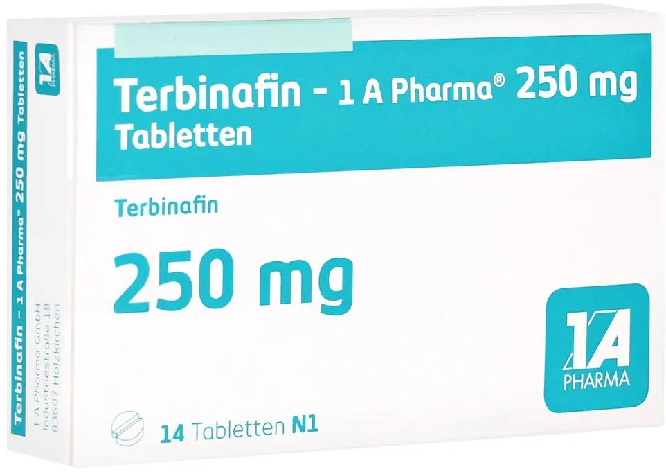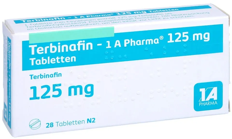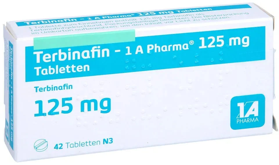 Kategorie: Arzneimittel - 1 A Pharma - GTIN:4150010443017 - PZN:01044301 - Terbinafin-1a Pharma 125 mg Tabletten 28 St - 21,07 Euro bei medpex.de - gefunden von billiger.de ![]() ![]() Terbinafin ? 1 A Pharma® | 1. Nagellack gegen Nagelpilz| 2x 3,3ml | Bekämpft den Nagelpilz* gezielt | Trocknet in 30 Sekunden
