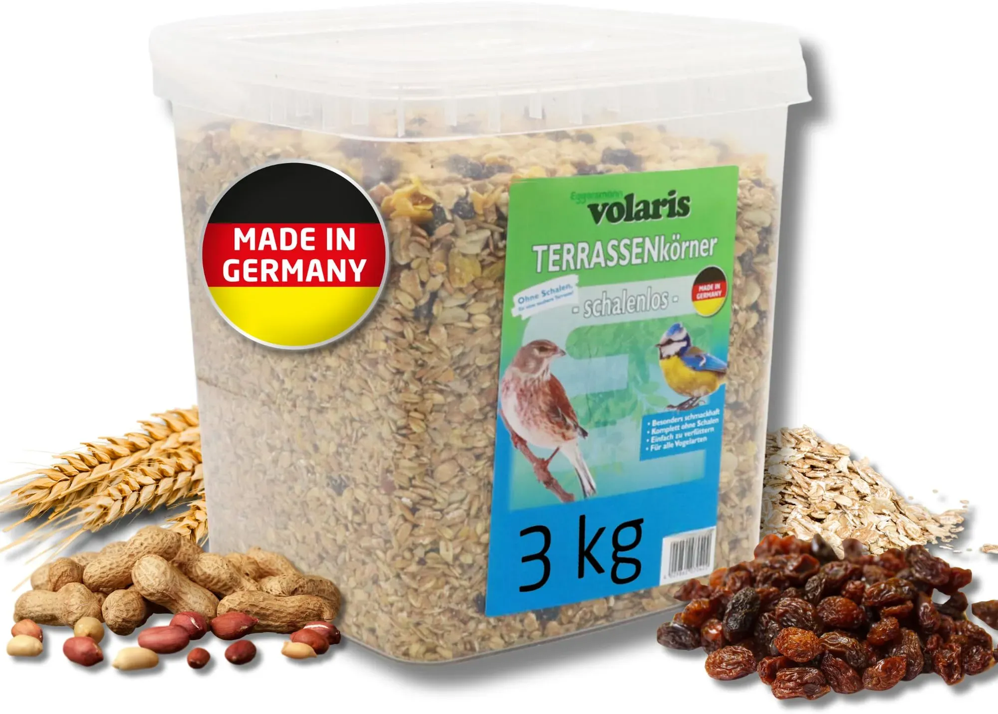 Kategorie: Vogelfutter - BTG Classic - GTIN:4250016803300 - BESTE ROHSTOFFE - Wir verarbeiten nur beste deutsche Rohstoffe in unserer Familieneigenen Produktion 'Made in Germany'. Vogelfutter für alle Körner- und Weichfutterfresser wie z.B. Buchfinken, Drosseln, Meisen usw. SICHTBARE ZUTATEN - Sie sehen in unserem Futter alle Zutaten und wir verarbeiten absolut keine billigen Füllstoffe. Ganzjahres Futter mit Nüssen und geschälten Sonnenblumenkernen GANZJAHRESFüTTERUNG - Durch die vielfältige Kernmischung ist eine Ergänzungsfütterung zur durchgängig Fütterung über das ganze Jahr für viele Wildvogelarten möglich PREMIUM TERRASSENMIX - Unser Terrassenmix wird extrem gerne von nahezu allen Wildvögeln gefressen und hinterlässt auf Terrasse und Balkon keinerlei Schalenrückstände CLASSIC BIRD Vogelfutter Terrassenmix 10 kg, Vogelfutter Erdnusskerne für Wildvögel, Vogelfutter Sonnenblumenkerne geschält, Vogelfutter schalenlos, Gartenvögel, ganzjahres Vogelfutter, Fettfutter - 28,73 Euro bei Amazon Marketplace Lawn & Garden - gefunden von billiger.de ![]() ![]() Futterbauer Terrassenmix - 10kg schalenloses eBay Vogelfutter Ganzjahresvogelfutter