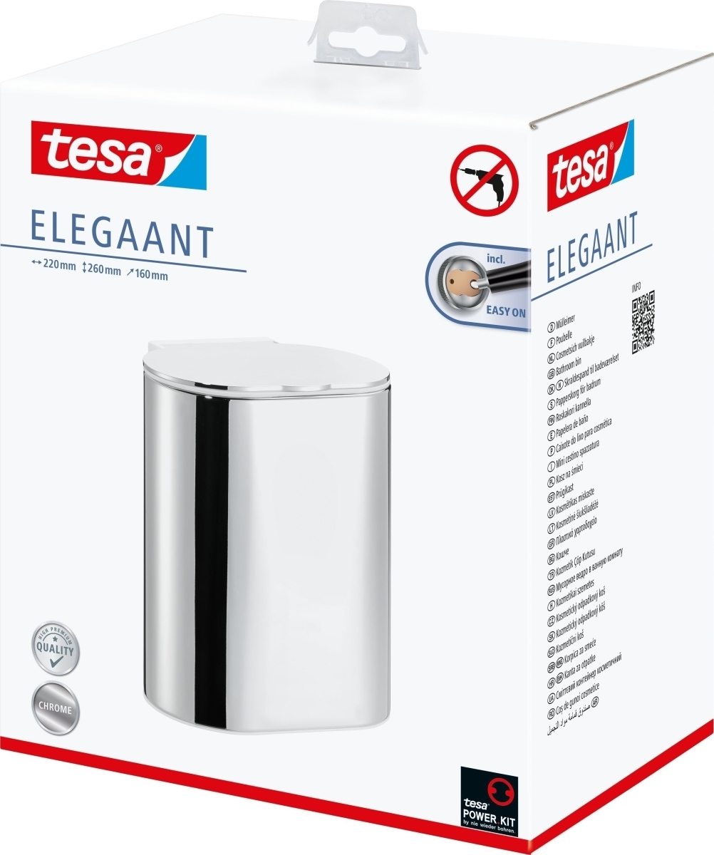 tesa - EAN: 4042448455215 - tesa ELEGAANT Kosmetikabfalleimer inkl. Klebelösung ohne Bohren (10 l) (40446-00000-00) - bei galaxus.de - aus Yadore Produktdaten ![]() ![]() tesa Papierkorb Kosmetikabfalleimer Elegaant Metall oval 260x220x160mm 10l verchromt