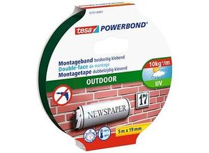 ![]() ![]() tesa Powerbond Outdoor - Doppelseitiges Montageband für den Außenbereich - Wasserfestes, starkes, UV-beständiges Klebeband - 5 m x 19 mm