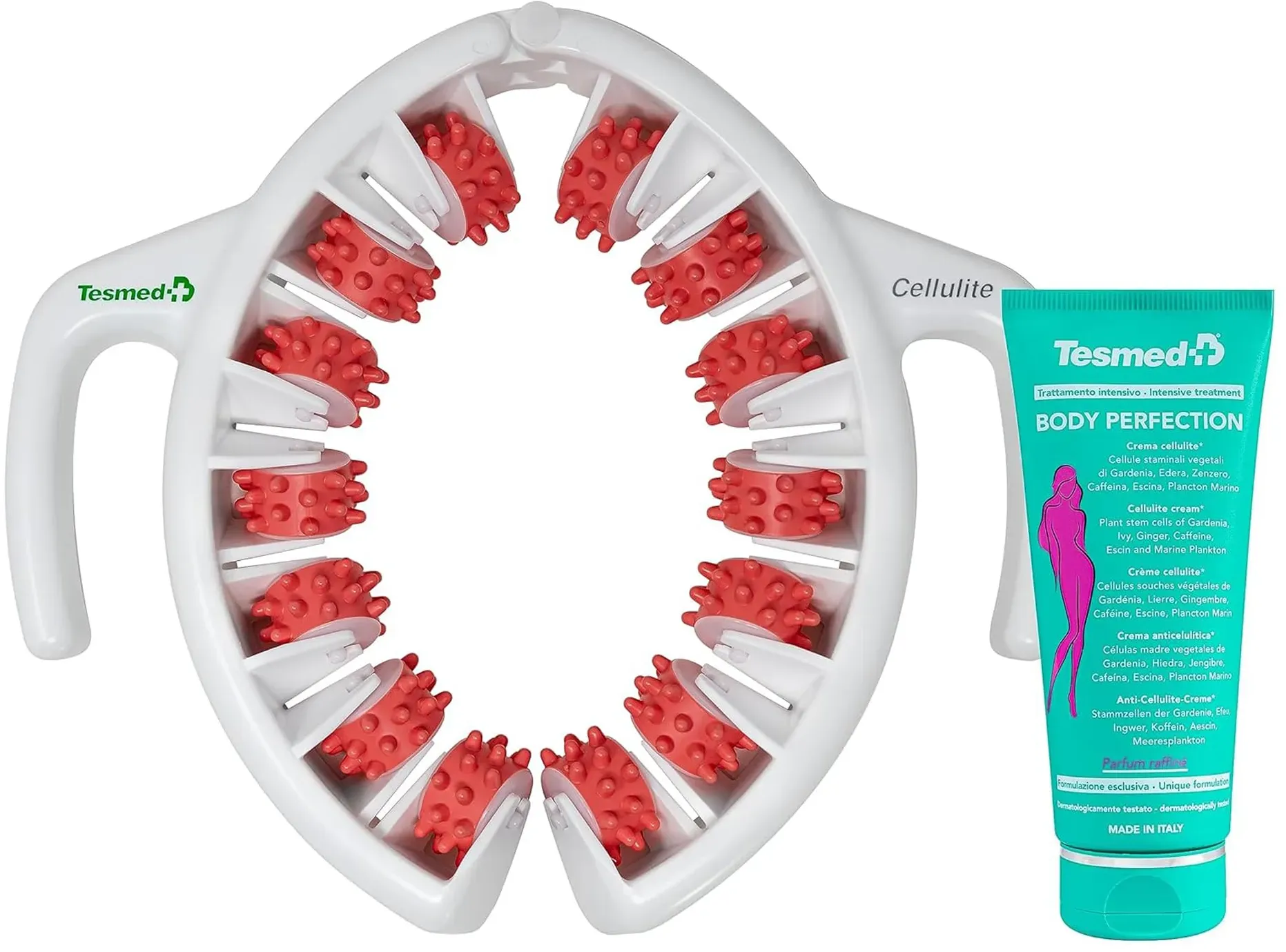 Auf Lager Versand durch AmazonTesmed Cellulite Farbe Rosa + Creme TESMED Body Perfection: Massagegerät Made in Italy Anti-Cellulite mit dreifacher Wirkung mit Anti-Cellulite-Creme
