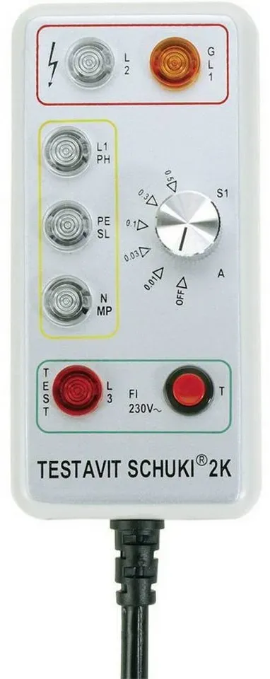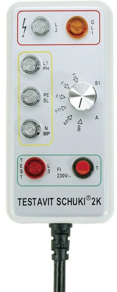 Verfügbarkeit: lieferbar-in 3-4 Werktagen bei dir - Kategorie: Spannungsprüfer - Testboy - GTIN:4028532200046 - Technische Daten WEEE-Reg.-Nr. DE , 50754191, Hinweise Lieferumfang , Bereitschaftstasche · Bedienungsanleitung., Warnhinweise , Unbedingt Bedienungsanleitung beachten!, - 124,99 Euro bei OTTO - gefunden von billiger.de Dieses Steckdosenprüfgerät mit FI-Auslösung ist eine gute Wahl für Anwender, die erweiterte Sicherheitsfunktionen benötigen. ![]() ![]() Testboy SCHUKI 2K - Steckdosenprüfer Testavit Schuki 2K mit FI-Auslösung