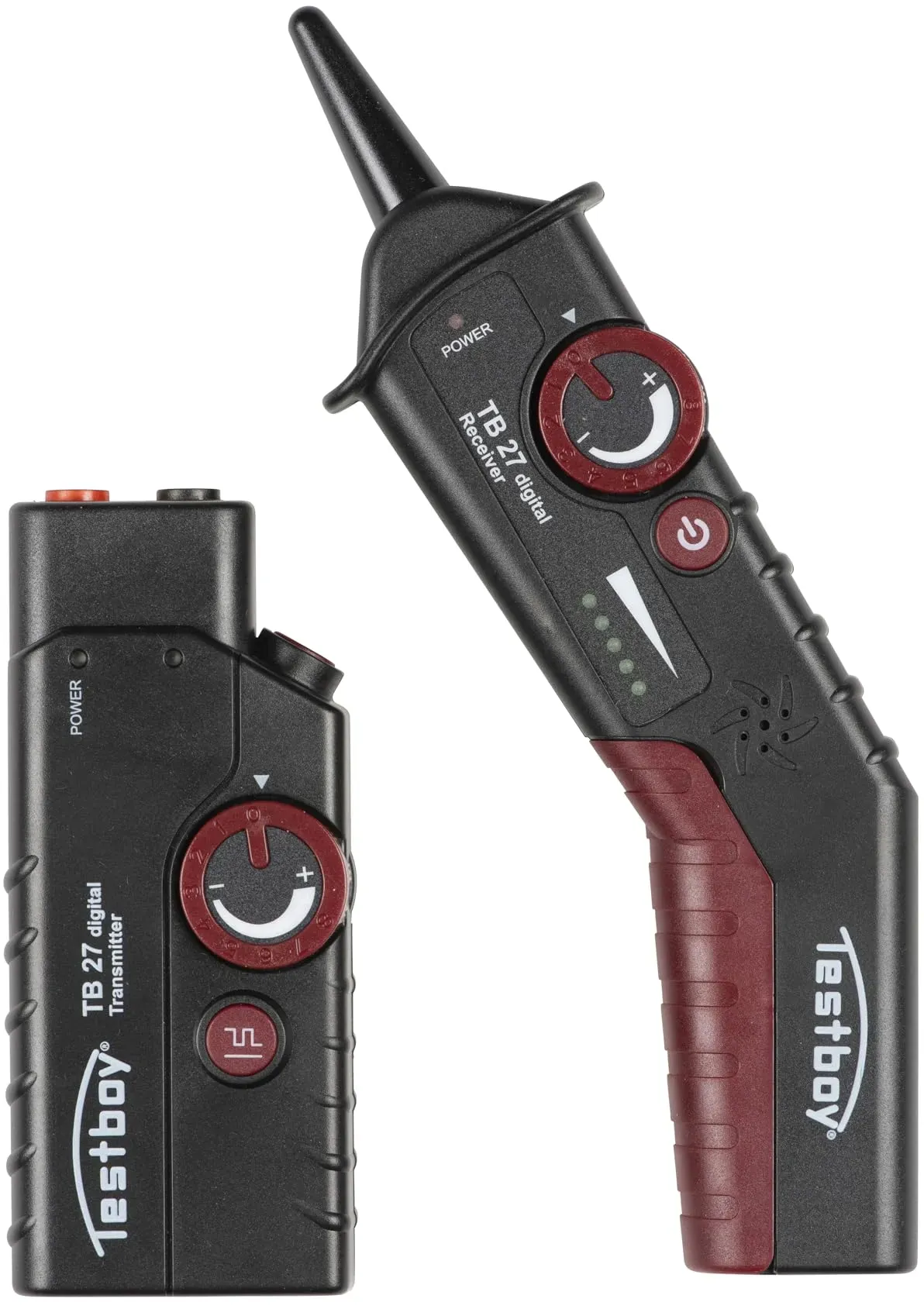 Testboy 27 META PreisvergleichMit dem Meta-Preisvergleich suchen Sie gleichzeitig bei den großen Preisvergleich Portalen!Jetzt live Suche nach testboy 27 starten! Testboy 27 KaufberatungBeim Kauf des Testboy 27 Leitungssuchers sollten Sie zwischen zwei Hauptvarianten wählen: Testboy 27 analog und Testboy 27 digital. Beide Geräte sind fremdspannungsgeschützt bis 400 V und dienen dem Auffinden von Leitungen in Wänden, Kabelkanälen oder im Erdreich, etwa zur Ortung von Mähroboter-Begrenzungskabeln oder Gartenbeleuchtung[1][3][5][9]. Wichtige Produktmerkmale und Unterschiede: | Merkmal | Testboy 27 analog | Testboy 27 digital | |--------------------------|------------------------------------------|---------------------------------------------| | Signaltyp | Analog | Digital (leichter im Erdreich zu lokalisieren) | | Anzeige | Optisch (LED) und akustisch | Optisch (Skala) und akustisch | | Spannungsschutz | Bis 400 V | Bis 400 V | | Stromversorgung | 5 x 1,5 V AA Batterien (Sender & Empfänger) | 5 x 1,5 V AA Batterien (Sender & Empfänger) | | Gewicht | Ca. 318 g (inkl. Batterien) | Ca. 318 g (inkl. Batterien) | | Farbe | Rot | Schwarz | | Lieferumfang | Bereitschaftstasche, Adaptersatz (Koax, F, RJ11) | Bereitschaftstasche, Adaptersatz (Koax, F, RJ11), Erdspieß | | Besonderheiten | Kontinuierlicher oder alternierender Ton, Doppeladererkennung | Einstellbarer Sende- und Empfangspegel, Erdspieß für Erdverlegung | Der Testboy 27 digital ist besonders für die Ortung von Leitungen im Erdreich geeignet, da das digitale Signal leichter zu lokalisieren ist. Er verfügt zudem über einen RJ11-Anschluss und wird mit einem Erdspieß geliefert, was die Anwendung im Außenbereich erleichtert[1][5]. Beliebtheit und Preisbereich: