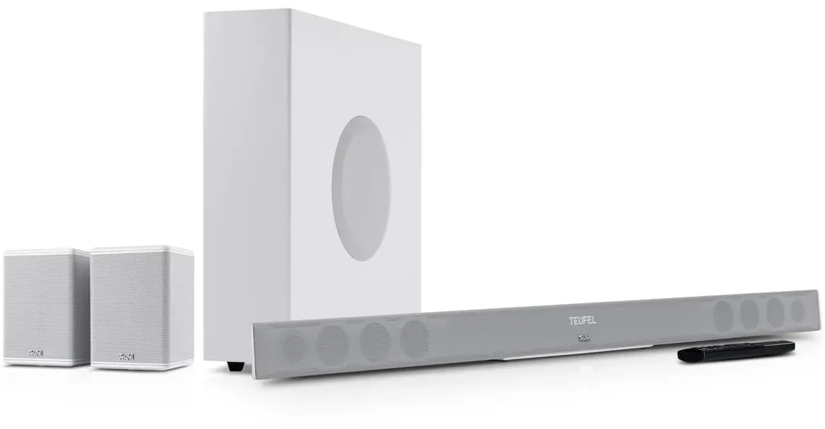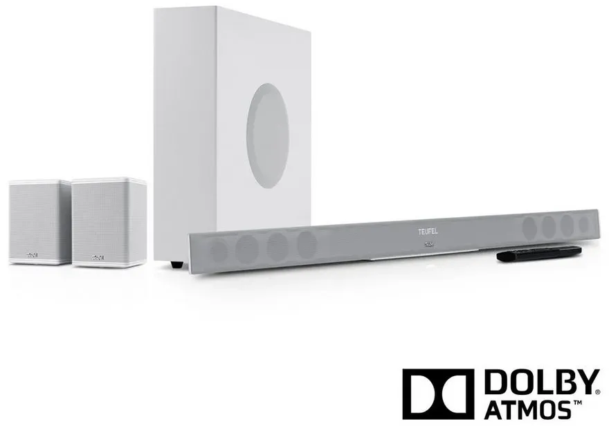 Gewöhnlich versandfertig in 3 bis 4 TagenTeufel CINEBAR 11 4.1 Mk4 - Dolby Atmos Soundbar mit kabellosem Subwoofer & Rücklautsprechern Sound System, Bluetooth aptX, HDMI CEC, 4K-Pass-Through - weiß
