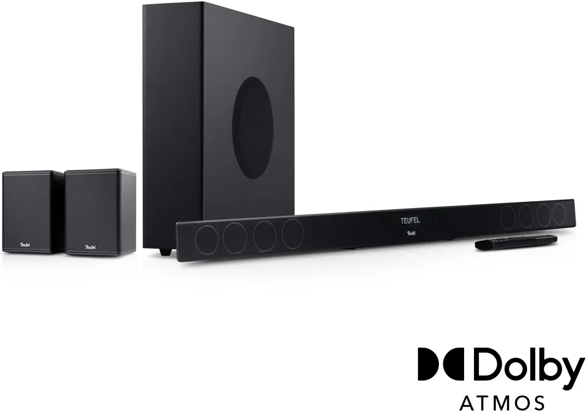 lieferbar-in 2-3 Werktagen bei dirTeufel CINEBAR 11 Surround für Dolby Atmos "4.1-Set" Soundbar (Bluetooth, 150 W, Dolby Atmos, kristallklares VFD-Display (dimmbar) schwarz