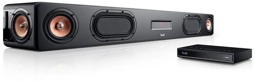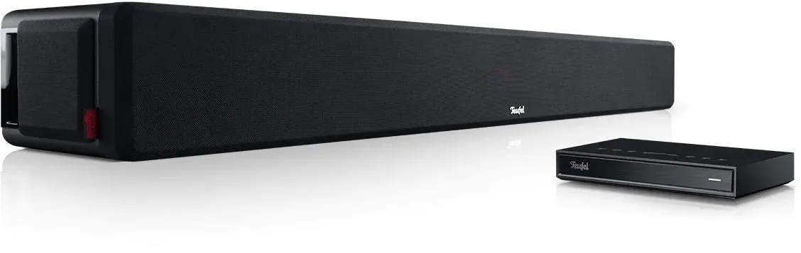 2 Händlerangebote bei billiger.de - Kategorie: Surround-Systeme - Teufel - Netzwerk- und Verbindungsarten Netzwerkstandard , Bluetooth, Netzwerkfunktionalität , Bluetooth, Allgemein Farbe , Schwarz, Lieferumfang , 1 x Teufel Streamer Schwarz, 1 x Cinchkabel für Teufel Streamer, 1 x Netzteil für Teufel Streamer (inkl. Kabel), 1 x CINEBAR ULTIMA , 2 x Gitter (Seite) für Cinebar Ultima, 1 x CINEBAR ULTIMA Fernbedienung, 1 x Gitter (Front) für Cinebar Ultima, 2 x AAA-Batterie, 1 x Stromkabel Schwarz, Anschlüsse Anzahl USB-Anschlüsse , 1, Anzahl Digital-Audio-Eingänge optisch , 1, Anzahl Audio-Eingänge Cinch , 1, Anzahl Audio-Ausgänge Cinch , 1, Anzahl AUX-Anschlüsse , 1, Anzahl HDMI-Anschlüsse , 1, Audio- und Videowiedergabe Gesamtleistung (RMS) , 380 W, Schalldruck , 99 dB, Maße & Gewicht Breite , 110 cm, Höhe , 13.3 cm, Tiefe , 16.4 cm, Gewicht , 11.2 kg, Stromversorgung Art Stromversorgung , kabelgebunden, Betriebsspannung , 230 V, Technische Daten Frequenz maximal , 20000 Hz, WEEE-Reg.-Nr. DE , 89130002, - GTIN:4048945034892 ![]() ![]() Teufel CINEBAR Ultima Streaming - Soundbar mit Streamer, WLAN-Netzwerkplayer, Kabellos, LAN, Integriertes Subwoofer System, Multiroom Funktion - schwarz