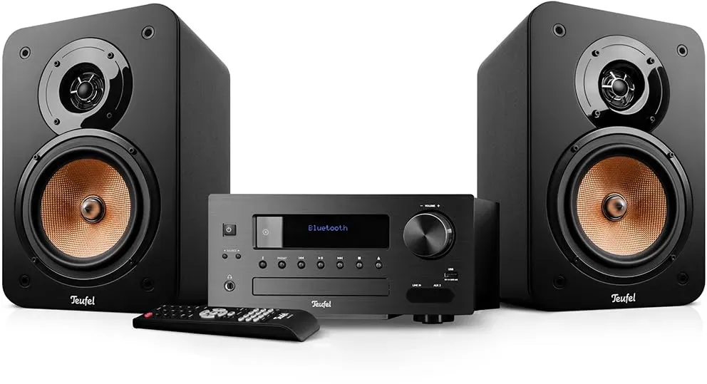 Zustand: Neu - Kompaktanlagen - Teufel Lautsprecher Teufel - A1024 GHGCE-561 - EAN: 4048945034380 - Kompakte Stereo-Anlage der Spitzenklasse für Musik, TV-Ton, Radio und Games Neu: Digitalradio über DAB+ in rauschfreier, hoher Klangqualität mit überregionaler Senderauswahl Bluetooth mit aptX für Musikstreaming in CD-ähnlicher Qualität von Spotify, Youtube, Apple Music, TuneIn etc. Starker 80 Watt-Verstärker für hohe, verzerrungsfreie Pegel, 2-Wege-Regallautsprecher Ultima 20 mit Bassreflex-System, Phase-Plug- und Wave-Guide Technologie Geeignet für Regalaufstellung sowie Wandanbringung Anschluss für optionalen Subwoofer, weitere Quellen über Line-In nutzbar, USB-Playback, FM-UKW Radio, Kopfhöreranschluss Inklusive Fernbedienung, Lautsprecherkabel, Abdeckungen, Batterien und Antenne Geeignet für Räume bis 25 m² - Verkäufer: Lautsprecher Teufel GmbH im amazon.de Marketplace ![]() ![]() Teufel Ultima 20 Kombo 2 - HiFi Stereo Kompaktanlage mit CD und Bluetooth, USB, DAB+ Digitalradio, FM Radio, Musikstreaming, Bassreflex (Schwarz)
