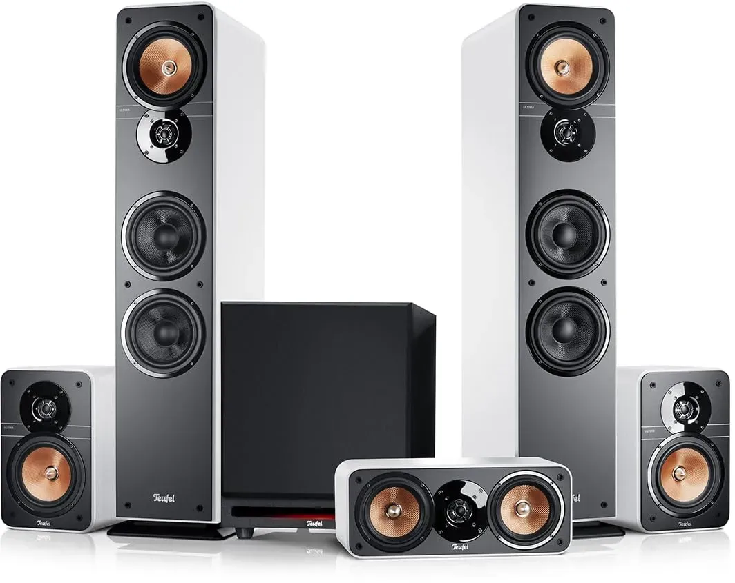 ![]() ![]() Teufel Ultima 40 Surround Power Edition 5.1-Set - Heimkino Lautsprecher 5.1 Soundanlage mit riesigem Subwoofer (optional kabellos ansteuerbar), Bassreflex, 3-Wege-System - Weiß