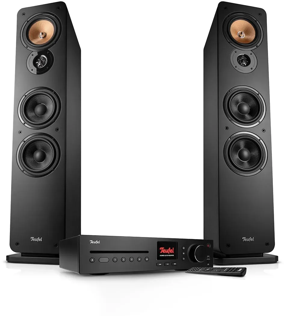 Kategorie: Musikanlagen - Teufel - GTIN:4048945589897 - Leistungsstarke, spielfertige Stereokomplettanlage mit neuem ULTIMA 40 (Mk4) Standlautsprecherpaar und KOMBO 62 Mk2 CD-Receiver für Musik, TV-Ton und Games in Räumen bis 35 m2 KOMBO 62 Mk2 CD-Receiver mit 2 x 130 Watt, HDMI ARC und CEC, Spotify Connect, DAB+/FM-Radio, Internet-Radio, Bluetooth mit AAC, Wifi, LAN, USB-Playback, großem Farbdisplay sowie Fernbedienung Bedienung auch über TV-Fernbedienung & Teufel Remote App möglich, hohe Reparier- und Langlebigkeit dank intern gesteckter Module Umfangreiche Anschlussmöglichkeiten & Kopfhöreranschluss, inklusive Lautsprecherkabel (2 x 3 m), mit Subwoofer erweiterbar 3-Wege-System mit zwei hoch belastbaren Tieftönern für hohe, verzerrungsfreie Pegel bei ausgewogener Abstimmung Doppelrohr-Bassreflexaufbau für tiefen, druckvollen und präzisen Bass auch bei geringen Pegeln und ohne Subwoofer Tiefmitteltöner aus gewebtem Kevlar mit Phase-Plug arbeitet in separater Kammer mit Verstrebungen für eine präzise, breite Bühnendarstellung Großer 25-mm-Hochtöner mit Waveguide für hochauflösende, feine Höhen und sehr guter Sprachverständlichkeit - 1004,99 Euro bei Amazon Marketplace CE - gefunden von billiger.de Die aktive Club Edition bietet ein kraftvolles 2.1-System mit Subwoofer, ideal für Musikliebhaber, die satten Bass schätzen. ![]() Teufel.de