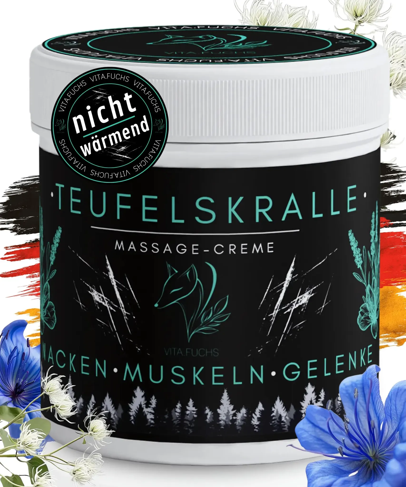 Kategorie: Medizinische Körperpflege - vita.fuchs - GTIN:4262366140325 - INTENSIVE FORMEL - Das Vita.Fuchs Teufelskralle Schmerzgel kombiniert hochwertige Teufelskralle mit wertvollen Inhaltsstoffen für eine wohltuende Gelenk- & Muskelentspannung - perfekt für dein tägliches Wohlbefinden. EXTRA STARKE SALBE - Die reichhaltige Teufelssalbe zieht schnell ein. Ideal für beanspruchte Muskeln & Gelenke nach einer überlastung oder bei chronischen Beschwerden. Diese Creme ist nicht wärmend. WOHLTUENDE PFLEGE - Die Beinwellsalbe spendet Feuchtigkeit, pflegt die Haut intensiv und kann als Rückenschmerzen Salbe zur Schmerzlinderung beitragen. Die ideale Wärmecreme für Rücken, Knie, Schultern & Nacken. BEWEGLICH BLEIBEN - Die einzigartige Knieschmerzen Salbe aus Teufelskralle und weiteren biologischen Inhaltsstoffen kann dein Wohlbefinden fördern und dich nach Belastungen auf natürliche Art und Weise unterstützen. MADE IN GERMANY - Die hochwertige Rheuma Salbe wird mit viel KnowHow und nach höchsten Standards in Deutschland hergestellt. Dein Wohlbefinden liegt uns am Herzen. - 22,99 Euro bei Amazon Marketplace Health & Personal Care - gefunden von billiger.de Dieses groÃ?e Gebinde von 500 ml bietet ein hervorragendes Preis-Leistungs-Verhältnis für regelmäÃ?ige Anwender. ![]() ![]() ALMIVITAL Muskel Massage-Gel mit Teufelskralle 500 ml | Kühlgel gegen Muskelschmerzen, Gelenkschmerzen & Muskelverspannungen | Salbe für Nacken, Schulter, Rücken & Sport