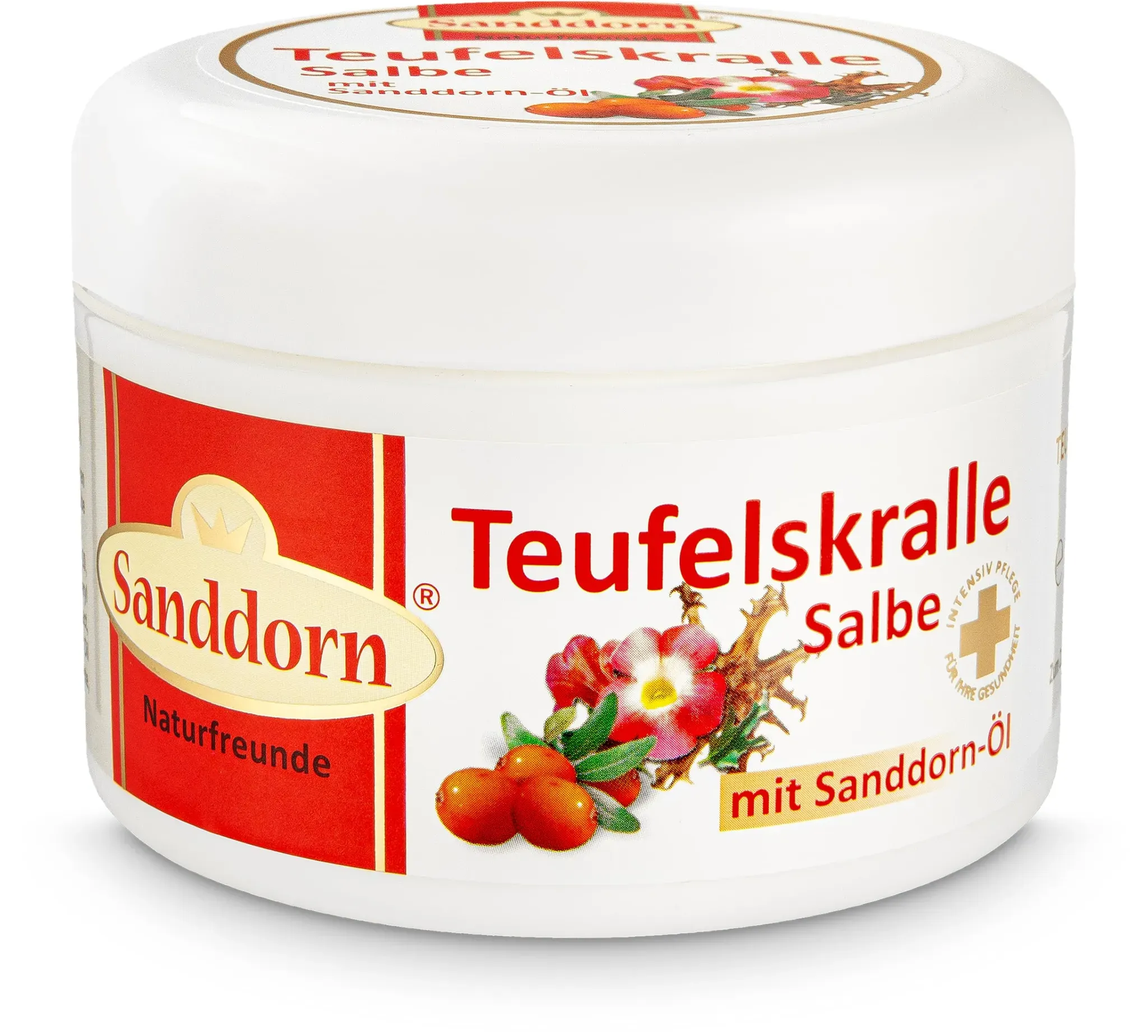 Zustand: Neu - 15,60 € / kg - Muskeln, Knochen & Gelenke Medikamente für Muskeln, Knochen & Gelenke - Herbamedicus Schmees GmbH - Hautbalsam Teufelskralle - EAN: 4170000157083 - POWER AUS SÜDAFRIKA | Enthält Extrakt aus den kraftvollen Wurzeln der südafrikanischen Teufelskralle, die natürliche entzündungshemmende und antioxidative Eigenschaften besitzt. OPTIMIERTE DURCHBLUTUNG | Der Teufelskralle Balsam fördert mit seiner natürlichen Wirkung die Durchblutung und sorgt so für eine merkliche Muskelentspannung und Regeneration, auch in Gelenken. IDEAL FÜR MASSAGEN | Der Balsam eignet sich ideal zur Gelenk- und Muskelmassage bei muskulären und Gelenkbeschwerden (z.B. Sehnenentzündungen, Zerrungen, Verspannungen, usw.). WILDE KRAFT & 100% VEGAN | Gewonnen aus der wild in den Savannen von Südafrika wachsenden Wurzel der Teufelskralle beinhaltet der Hautbalsam viele Bestandteile aus der Natur und ist 100% vegan. MADE IN GERMANY | Premium Salbe aus bewährter deutscher Produktion. Hohe Qualitätsstandards und -kontrollen sorgen für eine gleichbleibende Produktqualität - Verkäufer: Jalda-de im amazon.de Marketplace Diese Salbe bietet mit Sanddorn-Ã-l eine zusätzliche pflegende Komponente und ist mit 7,95 Euro ein gutes Mittelklasseprodukt. ![]() ![]() Sanddorn Naturfreunde TEUFELSKRALLE Salbe mit Sanddorn-öl | 250 ml